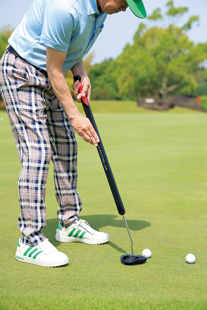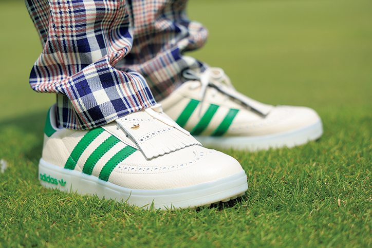 シューズはキルトが洒落た「オリジナルスゴルフ」の『コースカップ』や『プーマ・GSファスト』などスニーカータイプをチョイス。