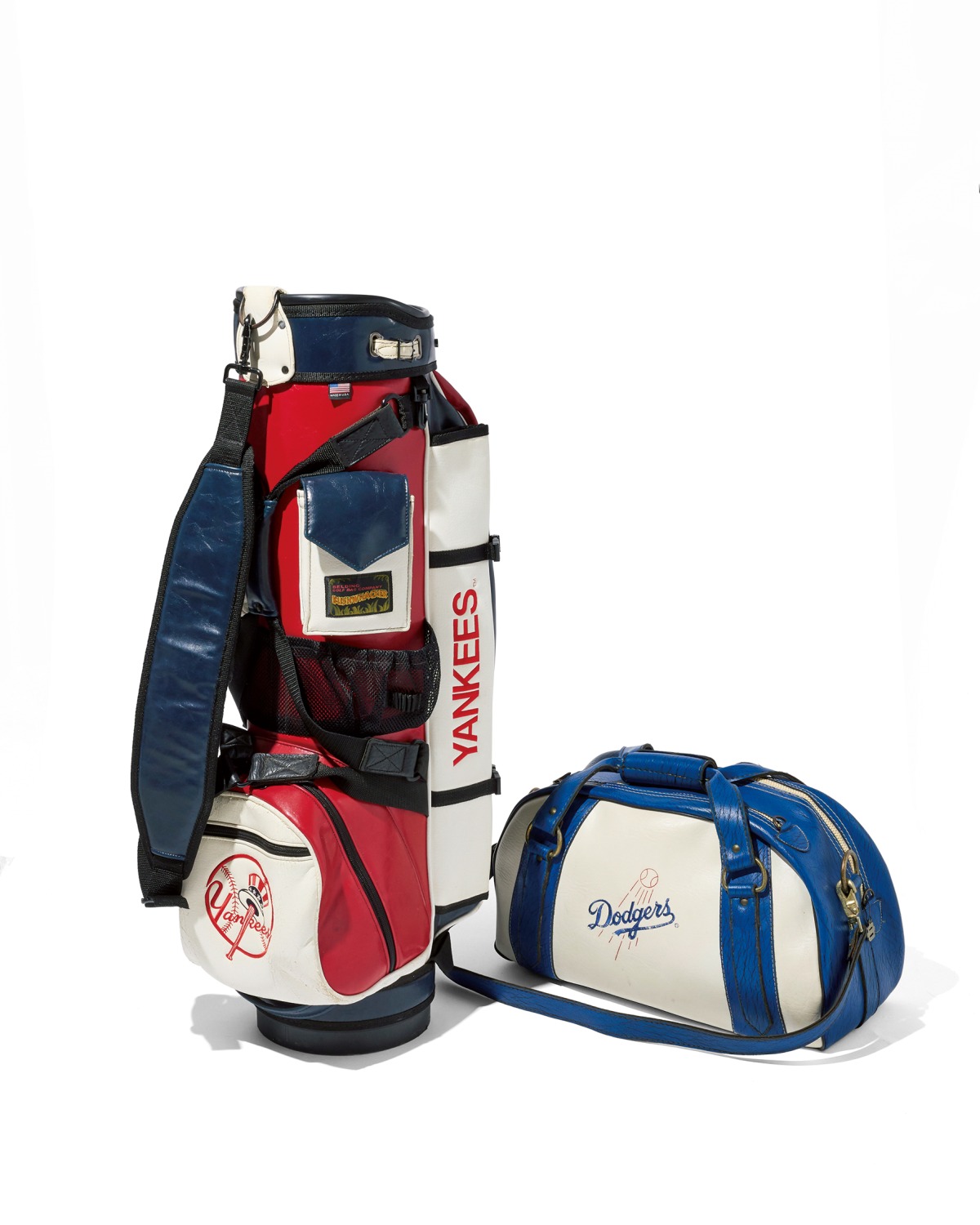 中村氏のライフワークでもあるリサイクルショップ巡りやオークションで手に入れたメジャーリーグモチーフのキャディバッグ&ボストンバッグ。遠方のゴルフ場からの帰路も高速道路を使わず、見知らぬ土地の一般道を愛車ともに巡って発見したリサイクルショップで“お宝”と出会う瞬間が、やめられない至福の時間。