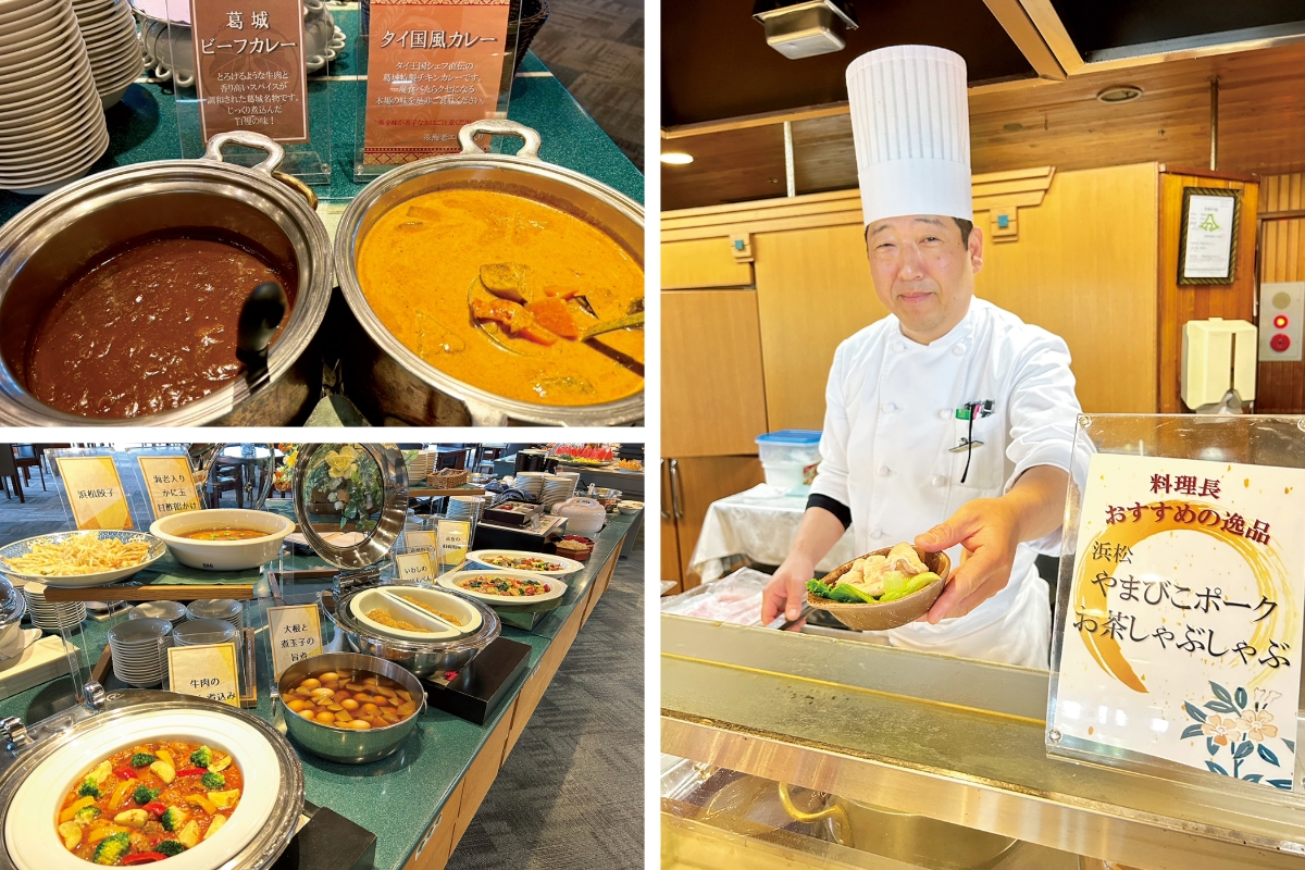 読者投票の中でもダントツで人気の高かったのがカレーメニューで、とくに「葛城ビーフカレー」は絶対に食べたい一品。料理長渾身の一品、浜松が誇る「やまびこポークのしゃぶしゃぶ」も外せない。ヤマハリゾート専属のパティシエール手作りのデザートもラインナップする。