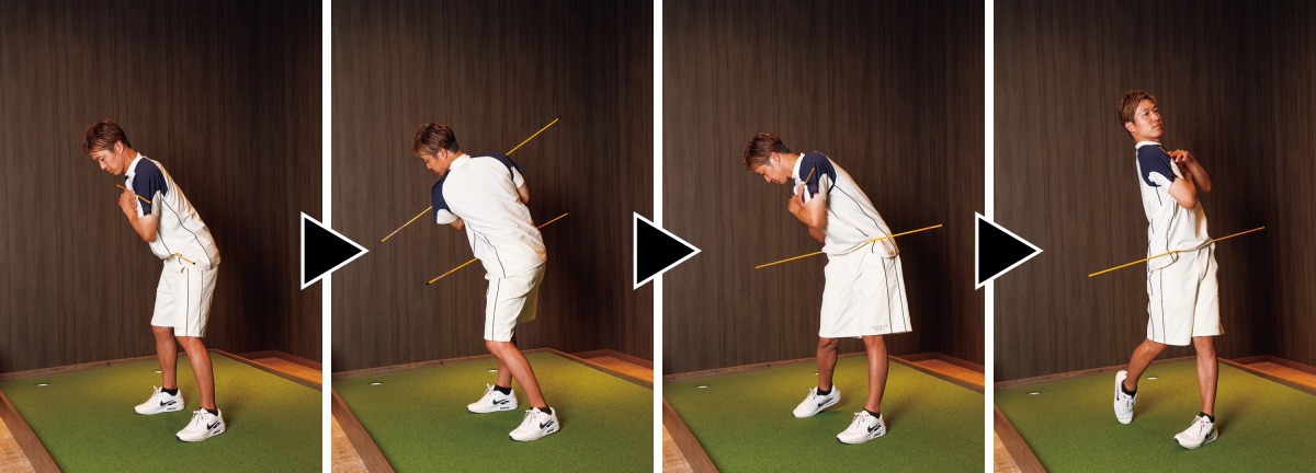 関節フリー理論を実践する上で不可欠なのは、クラブを持たずに正しい体の動き方を習得する感覚ドリルだ。いわゆる素振りは極めて重要なトレーニングだという。詳しくは、奥山のInstagramやYouTubeチャンネルでチェックを。