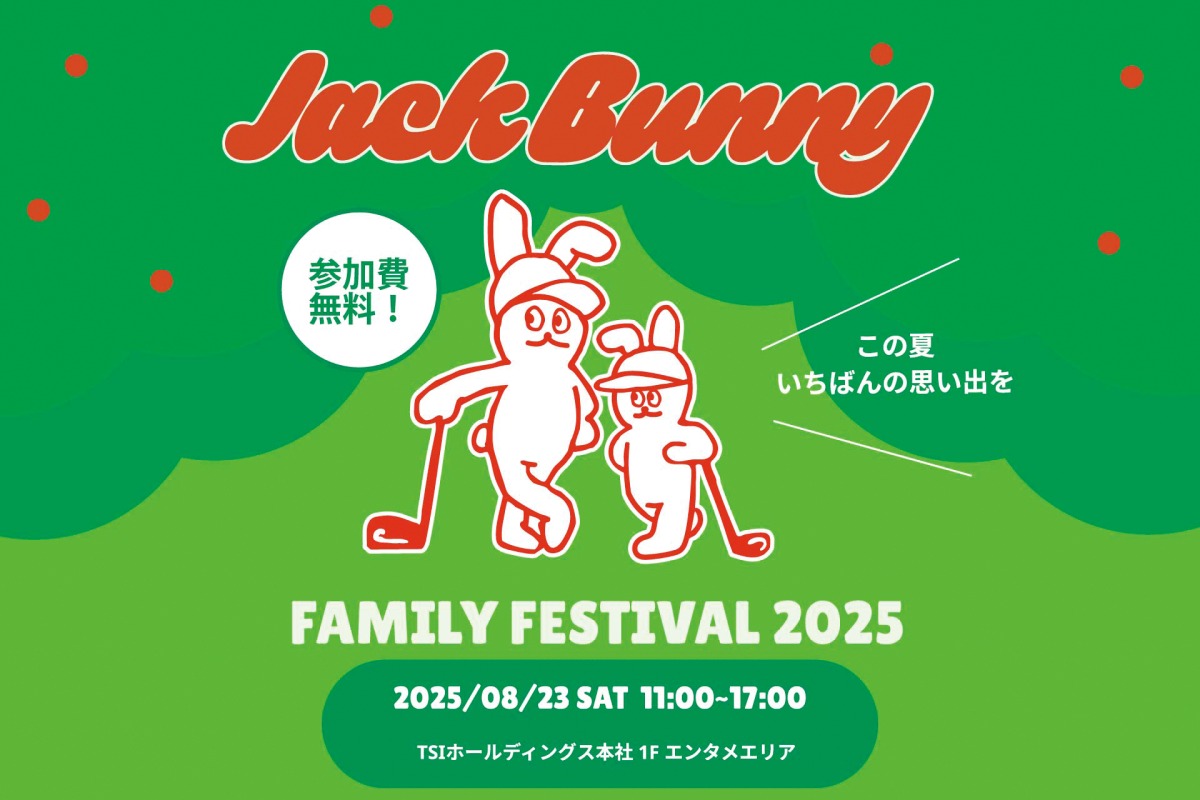 大人からジュニアまで幅広い層へゴルフウェアを提案する「Jack Bunny!!」は3世代で楽しめる体験型イベント『FAMILY FESTIVAL 2025』を8月23日に、TSIホールディングス本社にて開催する。射的やゲーム、スナッグゴルフ体験やプロによるパターレッスン他、プロカメラマンによる撮影も。親子で着られるウェアのお披露目や特別先行発売会も行われる。Jack Bunny!! https://www.jack-bunny.net/