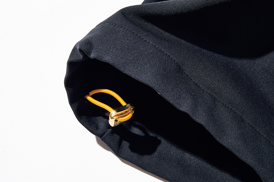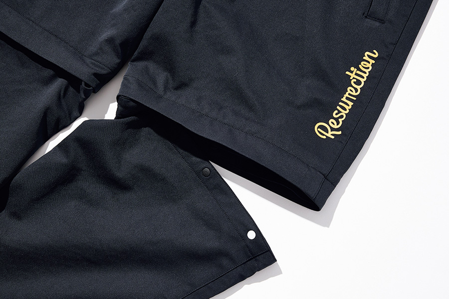 それゆえに伸縮性が高く撥水性も申し分ないブルゾンをやたらと持っているのだが、そういえばセットアップでは持っていないのでこの「レザレクション」の新作は良いと思う。「タクティーム」という生地は水が転がり落ちるほどの撥水性。しかも生地表面の蓮の葉構造により半永久的に撥水性能は持続するらしい。もちろんストレッチも抜群。半袖ショートパンツにも切り替わるギミックもある。コットンのように柔らかい生地なので衣擦れ音がしないという利点もある。