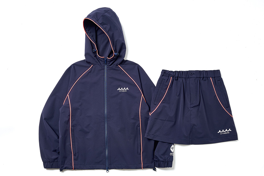 スポーティーなペアコーデも楽しめるセットアップ。ネイビー、ブラックの2色展開。ブルゾン38,500円、スカート27,500円