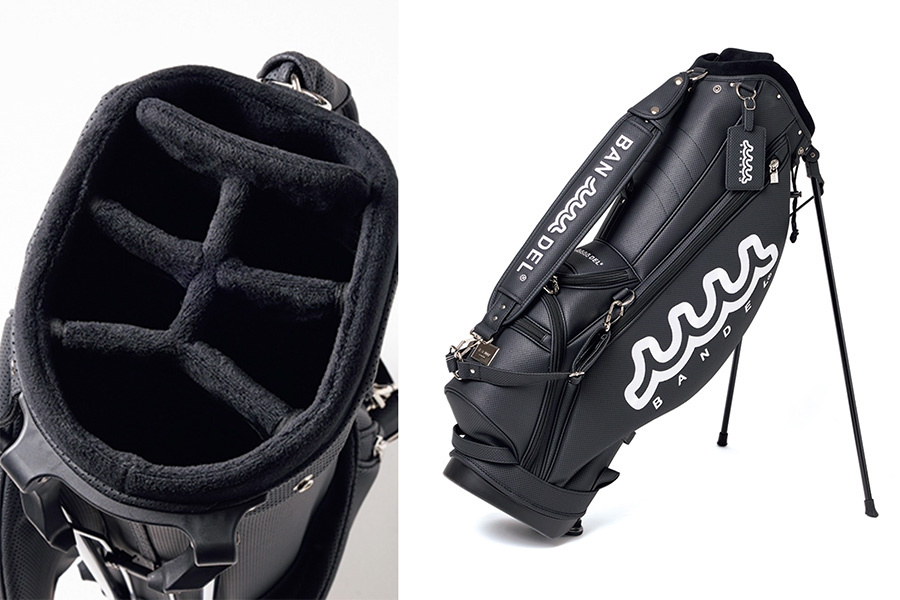 個人的な注目はまずキャディバッグで、ムータでもファンが多いシグネチャー的な素材にコラボロゴを刺繍した特別な一本。同じエシカルレザーを使用したヘッドカバーとセットで使いたい。体にやさしくフィットするモックネックニットもおすすめだ。1枚で着ても温かく、インナーとしてもかさばらない使い勝手の良いアイテムだ。