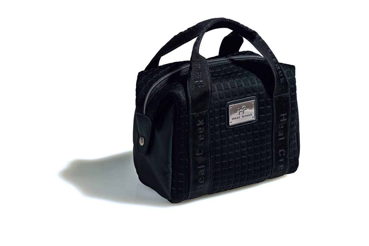 ネオプレーン素材で軽やか&上質な素材に、光沢ロゴプレートが静かな存在感。グローブや小物をすっきり収め、持つだけでその日のコーデに都会的な締まりが生まれる。黒の品格で引き締めるミニバッグは、ラウンドにも街使いにも映える大人のこなれアイテム。14,300円(問グリップインターナショナル)