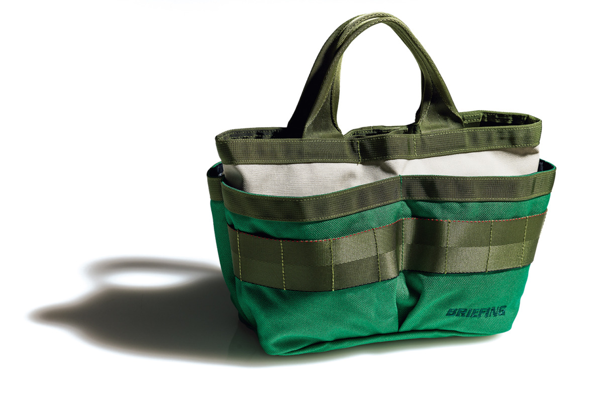 BRIEFINGらしい立体的なポケットのデザインが特徴的なカートバッグ。ミリタリー由来の立体ポケットで整理力抜群。耐久性に優れた「VORTEX® CANVAS」を使用し、見た目以上の収納力を実現。森をテーマにした配色が、ラウンドスタイルに映える。18,700円(問ブリーフィング六本木ヒルズ店)
