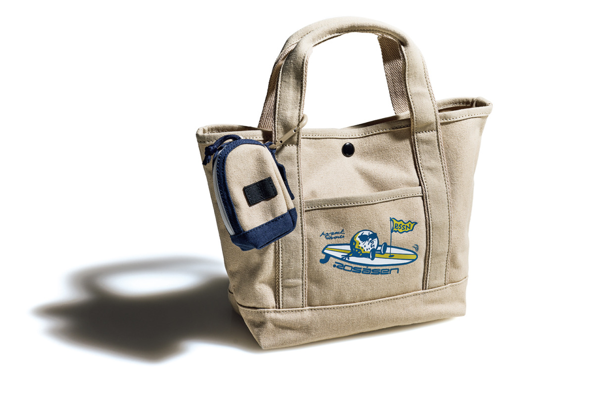 HERITECH BALL BOYシリーズで、裏コーティング加工を施したキャンバス素材。HIROCK SHOWさんとのコラボイラスト『ボールボーイ』入りで、両面ポケット付きのカートバッグ。口はドット釦開きで、ロサーセンらしい大人カジュアルなアイテムを楽しめる。ラウンドトート6,600円、ボールポーチ3,960円(問グリップインターナショナル)