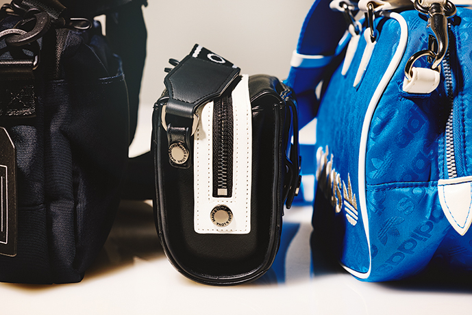 伝統を感じさせるモノグラムロゴを使用したラウンドバッグは、中身が取り出しやすいダブルジップ仕様。コースで必要な物を持ち運ぶのに便利で、普段使いもしやすいショルダーストラップ付き。15,400円(問アディダス ゴルフお客様窓口)