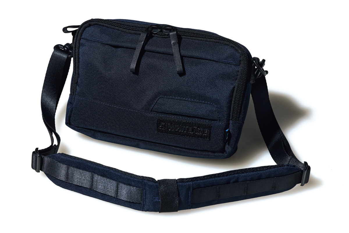 光沢ロゴが映えるクロスショルダー。防水ジップと3Dフラップでコンパクトに収納が可能。洗練されたルックスと機能性を兼ね備え、ゴルフ場でも映える。街使いにもハマるスマートな逸品。20,900円(問グリップインターナショナル)
