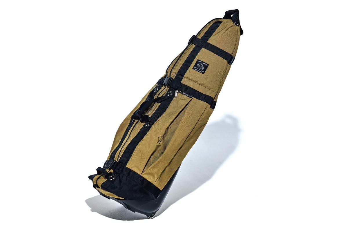 バリスティックナイロンを使った頑丈な作り。ゴルフクラブを傷めずに運ぶことができる。セルフバッグ2個を収納することが可能で、カップルや夫婦での海外ゴルフ旅にも最適な刺繍が映える“旅するバッグ”。79,200円(問ジル&ロウズ広尾店)