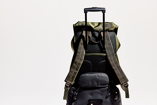 光沢のあるシリコンブリッジロゴが特徴のスタイリッシュなバックパック。内部にはラップトップスリーブと便利なポケットがあり、背面にはトラベルスリーブを装備。47,300円(問グリップインターナショナル)