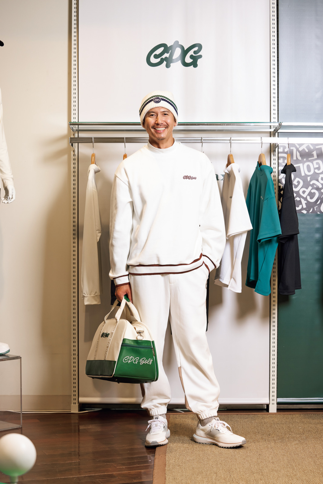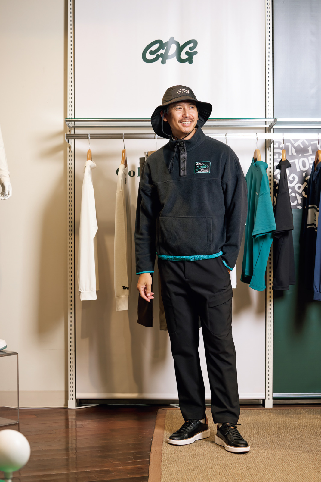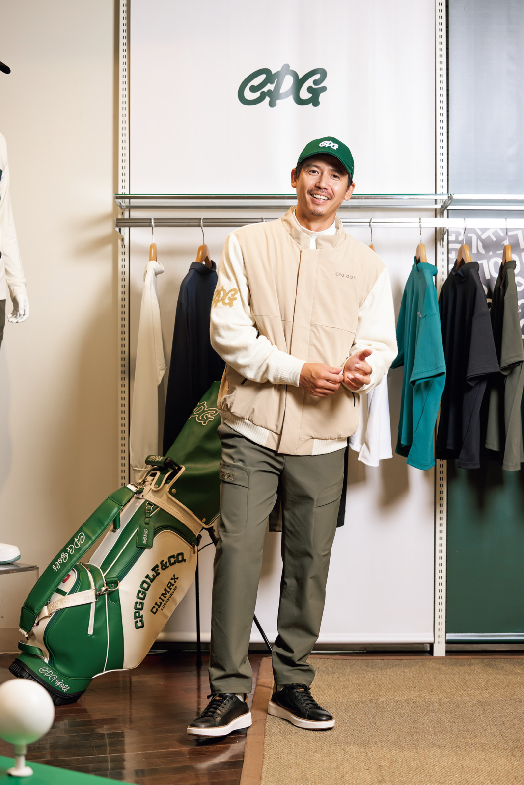 「これまでのCPG GOLFはトレンド感や十分な機能はあっても、ブランドとしての独自性が見えにくい部分はありました。でも新章では、デザインがぐっとモダンになって街着としても映えるようになりました」と横浜店店長の山田直人さん。シンプルなシルエットに効かせたカラーやロゴのアクセントは、クラシックさを保ちながらも新鮮な存在感を放つ。
