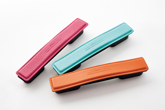 なんといってもその見た目。アルミニウムのパネルにリベットが打ち込まれたボディは、ミニマルでスタイリッシュ。無機質な雰囲気と渋めのモスグリーンが相性抜群だ。組み合わされるレザーハンドルのカラーを選べるのも遊び心があるし、金属プレートを回して鍵を開閉する「バタフライロック」のメカニカルな操作性も男心をくすぐるなあ。