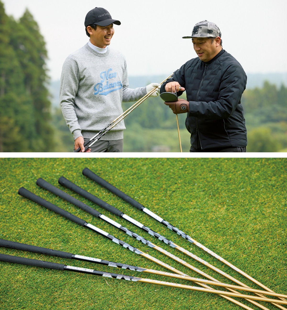 40g台~70g台の各シャフトをコースに持ち込み、数球ずつ打ちながら気持ちよくスイングできるスペックをチェック。重量、フレックスを変えながらお気に入りの1本を決定しました。