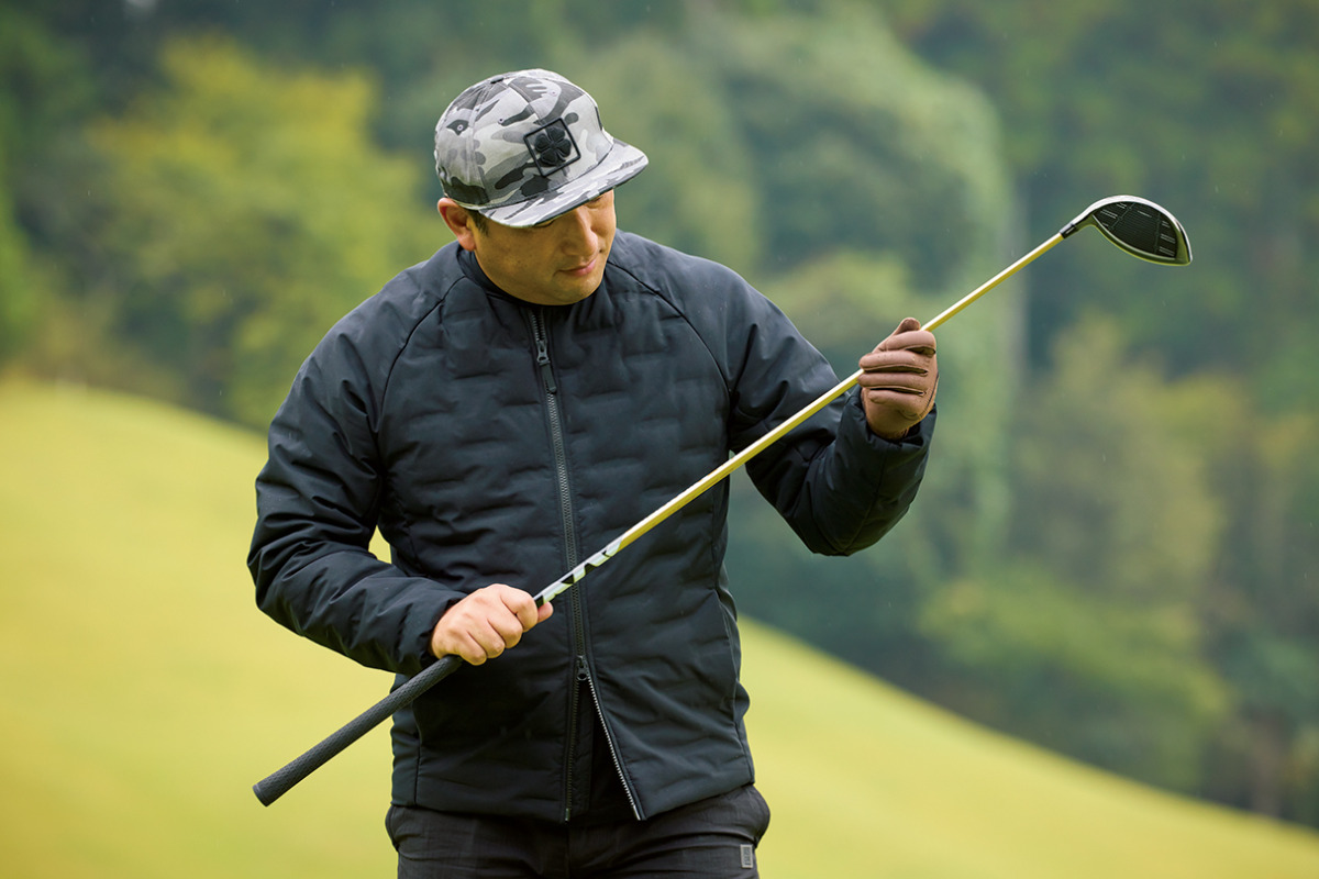 多少の曲がり幅は気にすることなく、常に振り切るスイングのティーショットが信条の編集シミズ。まずは60Sからスタート。予想していた以上に剛性の高さを感じるシャフトの挙動に驚きつつ、60X→70S→70Xと数球ずつスイング。最終的に選んだのは60X。頼りなさを感じることもなく、スイング・弾道ともに安定した結果に大満足。