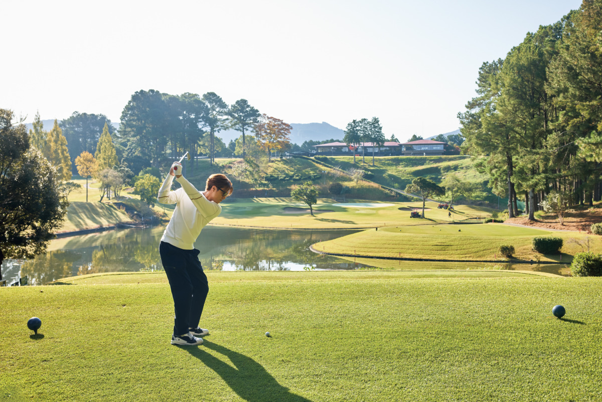 「フラットで回りやすいコースですが、池やバンカーが効いていて戦略性が高いです。OITAと同様にコンディションは良好で、カートをフェアウェイに乗り入れてのプレーは快適でした!」(内さん)