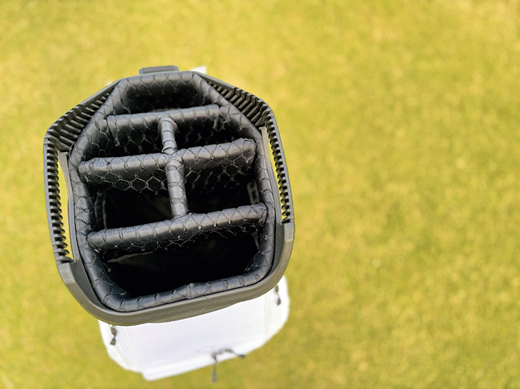 実はアメリカと日本ではカートの仕様が違うので、これまでアメリカのカートバッグを日本に持ってきても使い勝手が悪く浸透していなかった。具体的にはアメリカのカートは縦積みで、日本は横(斜め)積み。なので、ドライバーの収納位置が真逆で、そのまま持ってきても不便極まりなかったワケ。そこで口枠から日本仕様で開発した気合の入ったモデルがこの「C-130JC」。それを今回コラボモデルとして先行販売することに!各88,000円。