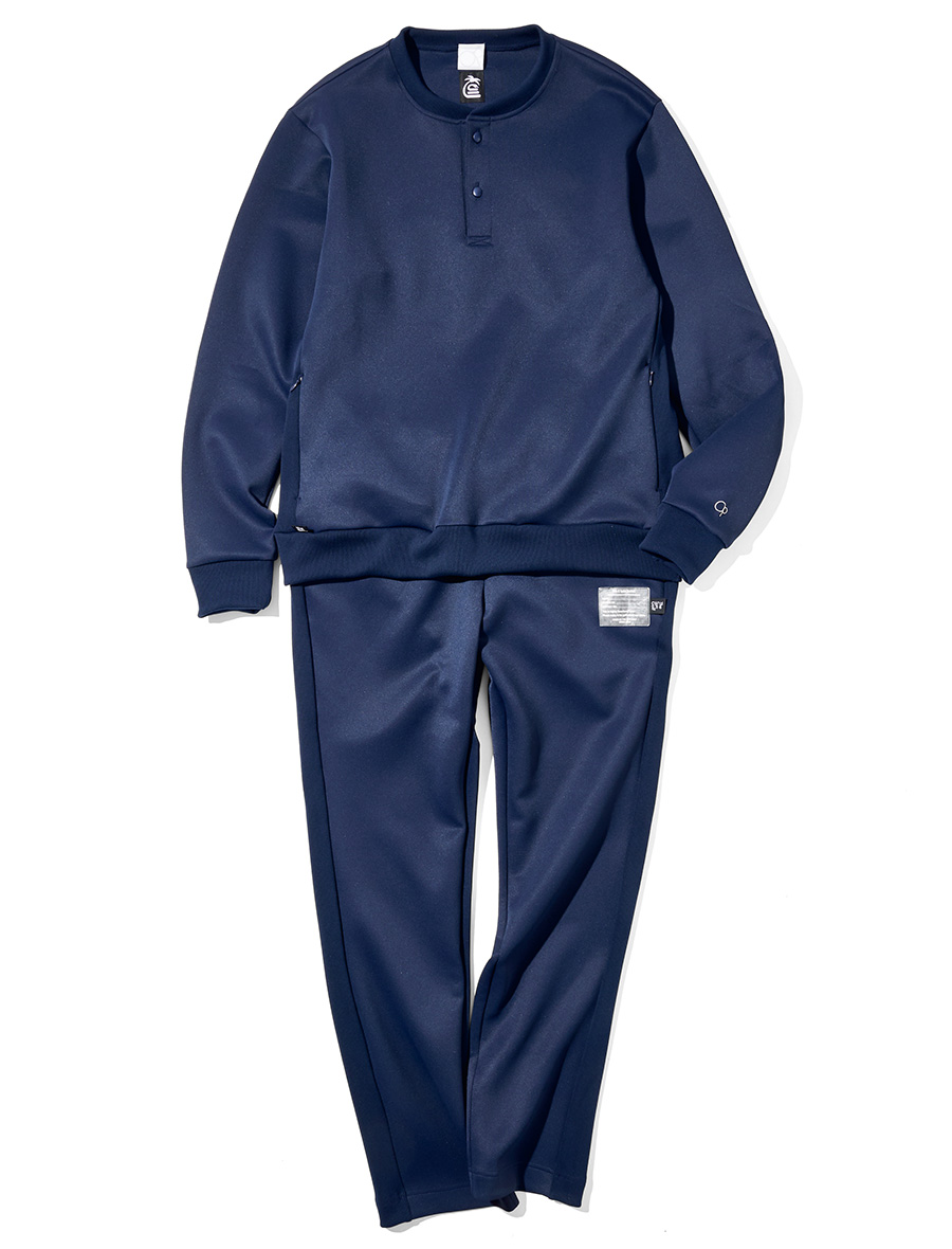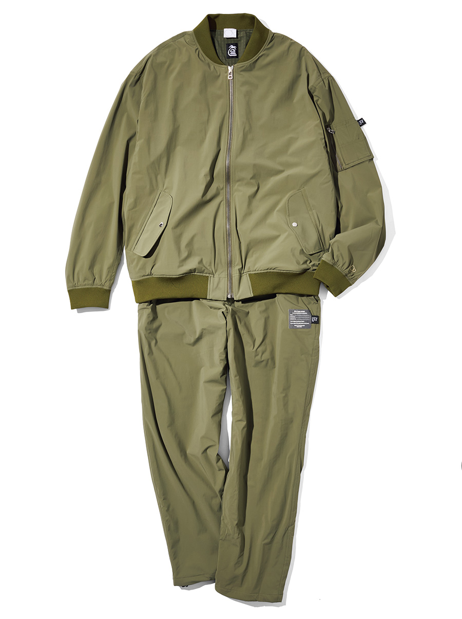 ヴィンテージ感溢れるMA-1型のナイロンセットアップとヘンリーネックが懐かしさを感じさせるダンボールニットのセットアップだ。前者はストレッチの利いた撥水素材で、後者は軽量で伸縮性もキックバック性も高い生地。