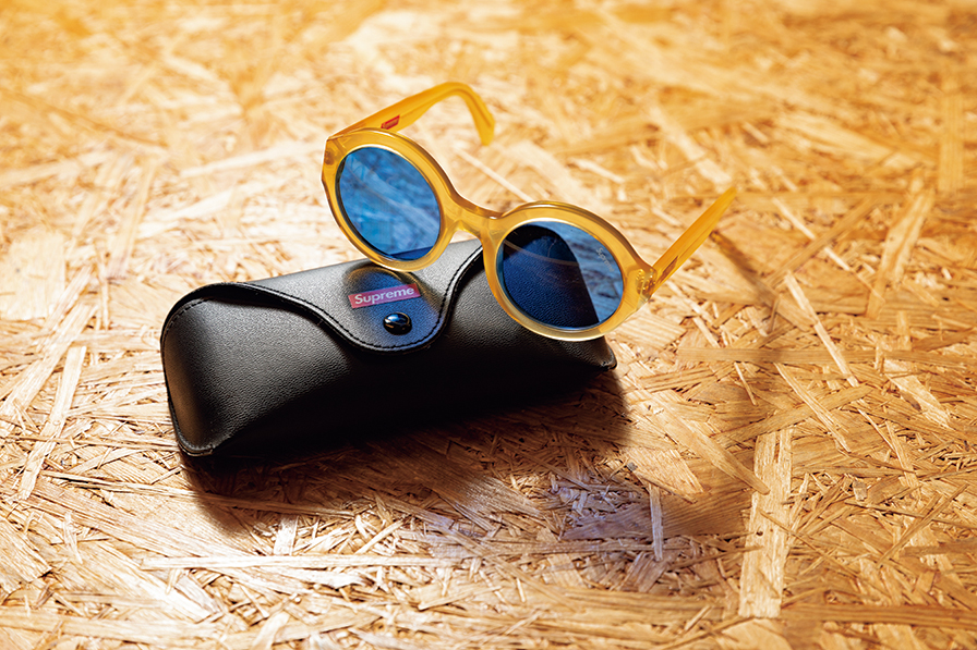 サングラスは「Supreme」のクリアフレーム。統一感のある物選びは参考になる。