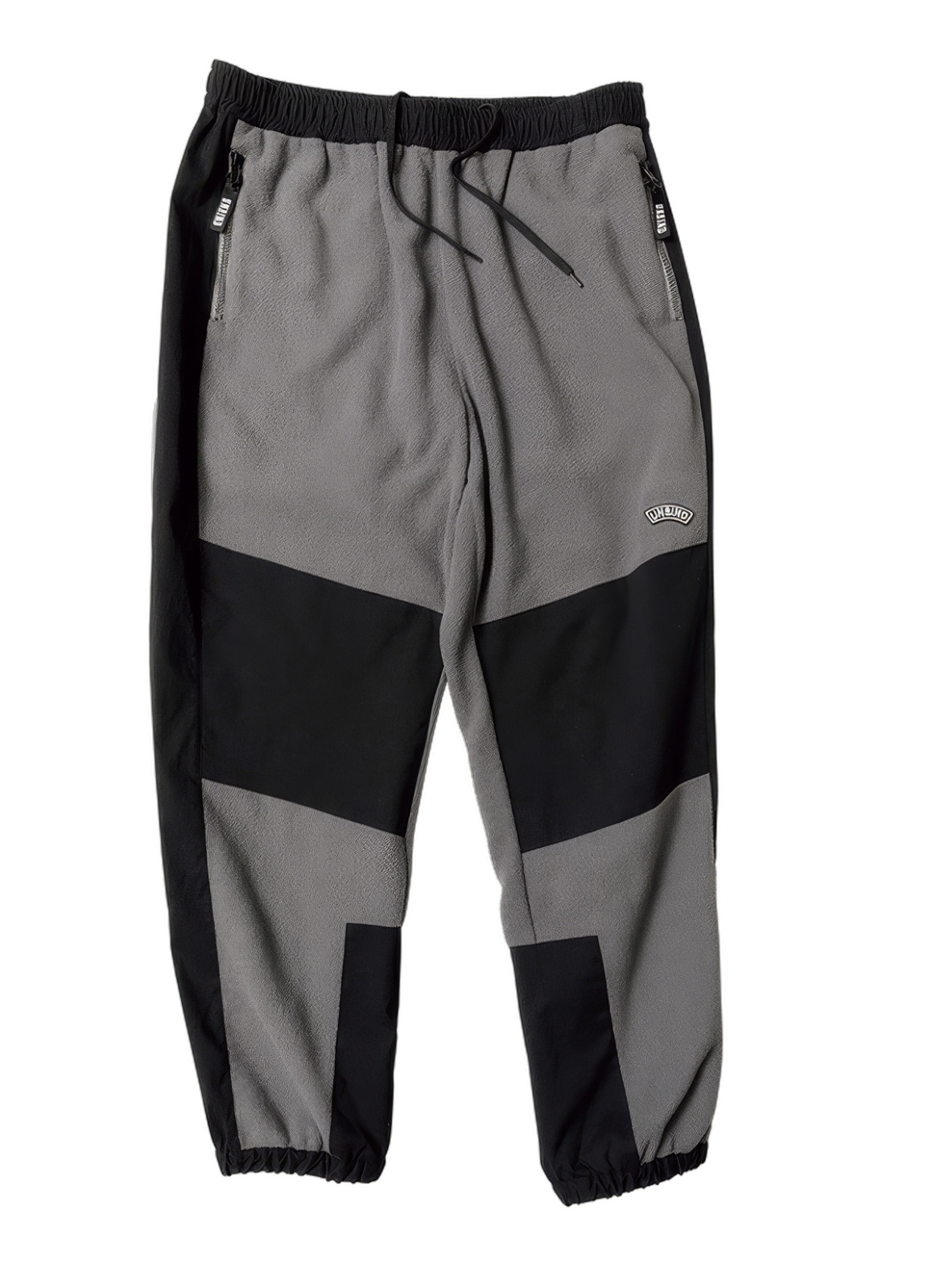 往時のアウトドアを思わせる切り返しのデザインが印象的なUNBINDの防寒パンツ。ゆったりサイズ。