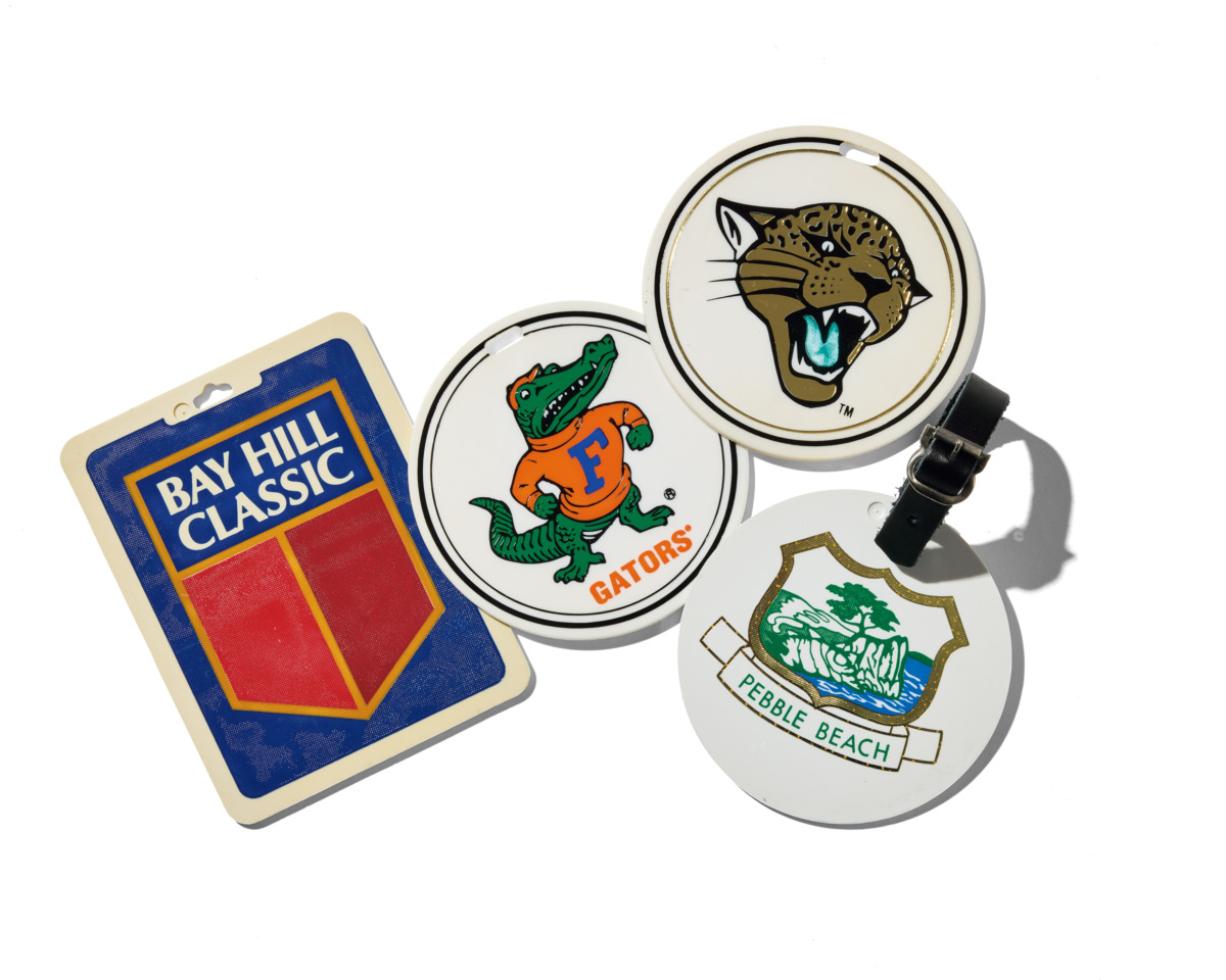 コースでビジター用に配るため、安価な素材で制作したのが始まりというプラスチック製バッグタグ。右から8800円、3850円[DEADSTOCK]、8800円、19800円(問 VOX GOLF OF AMERICA)