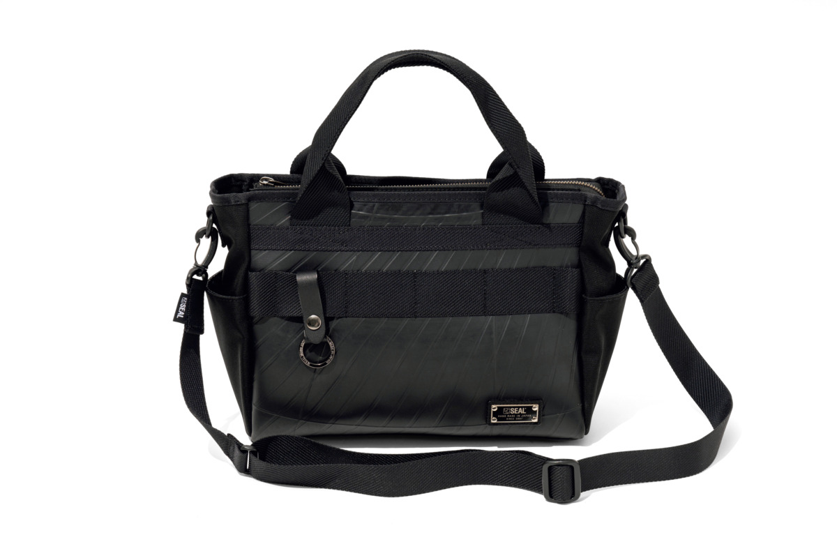 タイヤチューブと撥水性の高いナイロン素材を組み合わせたカートバッグ。ストラップ付属で手持ちと肩掛けの2WAY仕様。[W29×H22×D11cm]22000円(問 SEAL表参道本店)