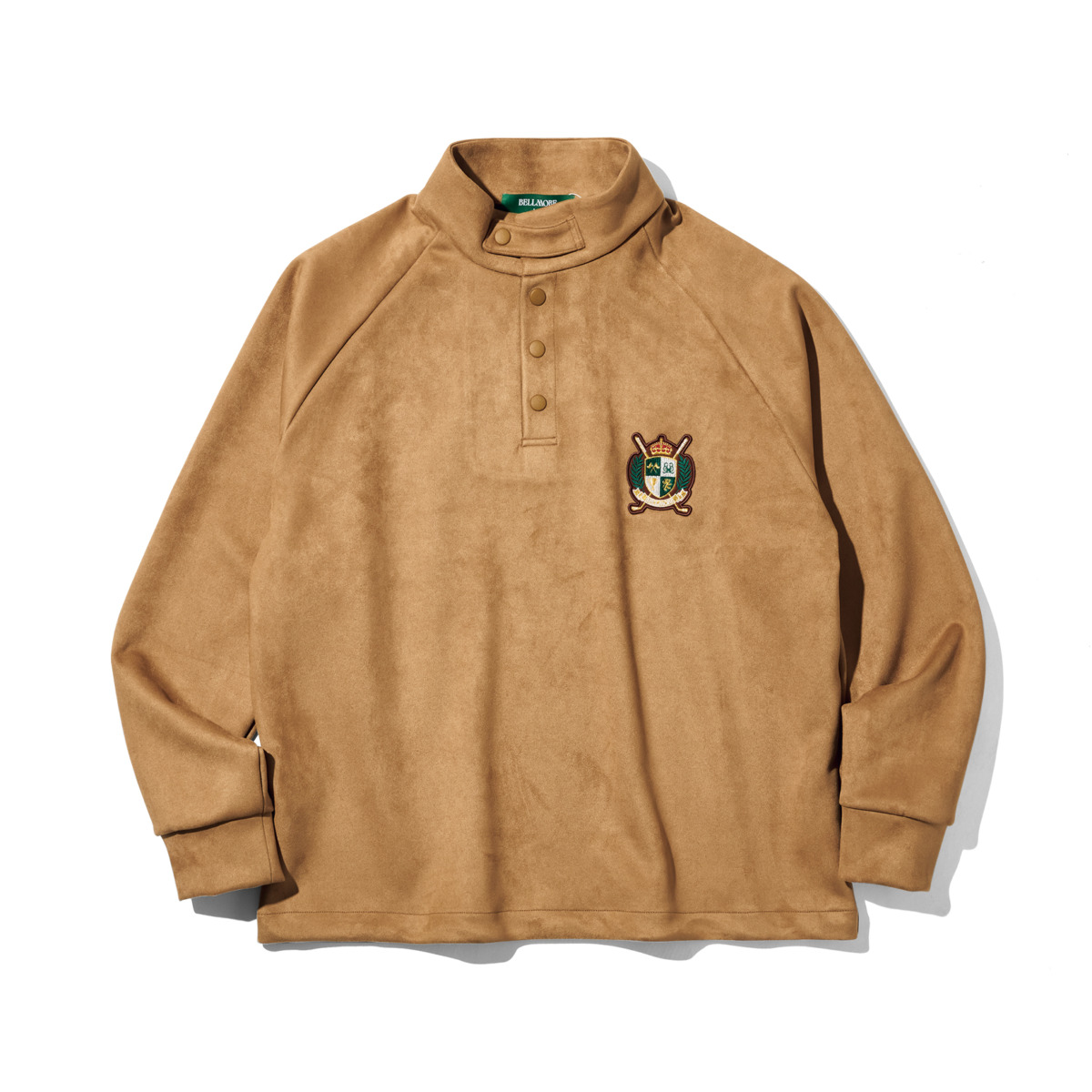 エレガントなデザインが特徴的なボタン付きモックネック。伸縮性を備えた表情豊かなスエード調の生地感が、気品ある紳士なスタイルを演出してくれる。36300円