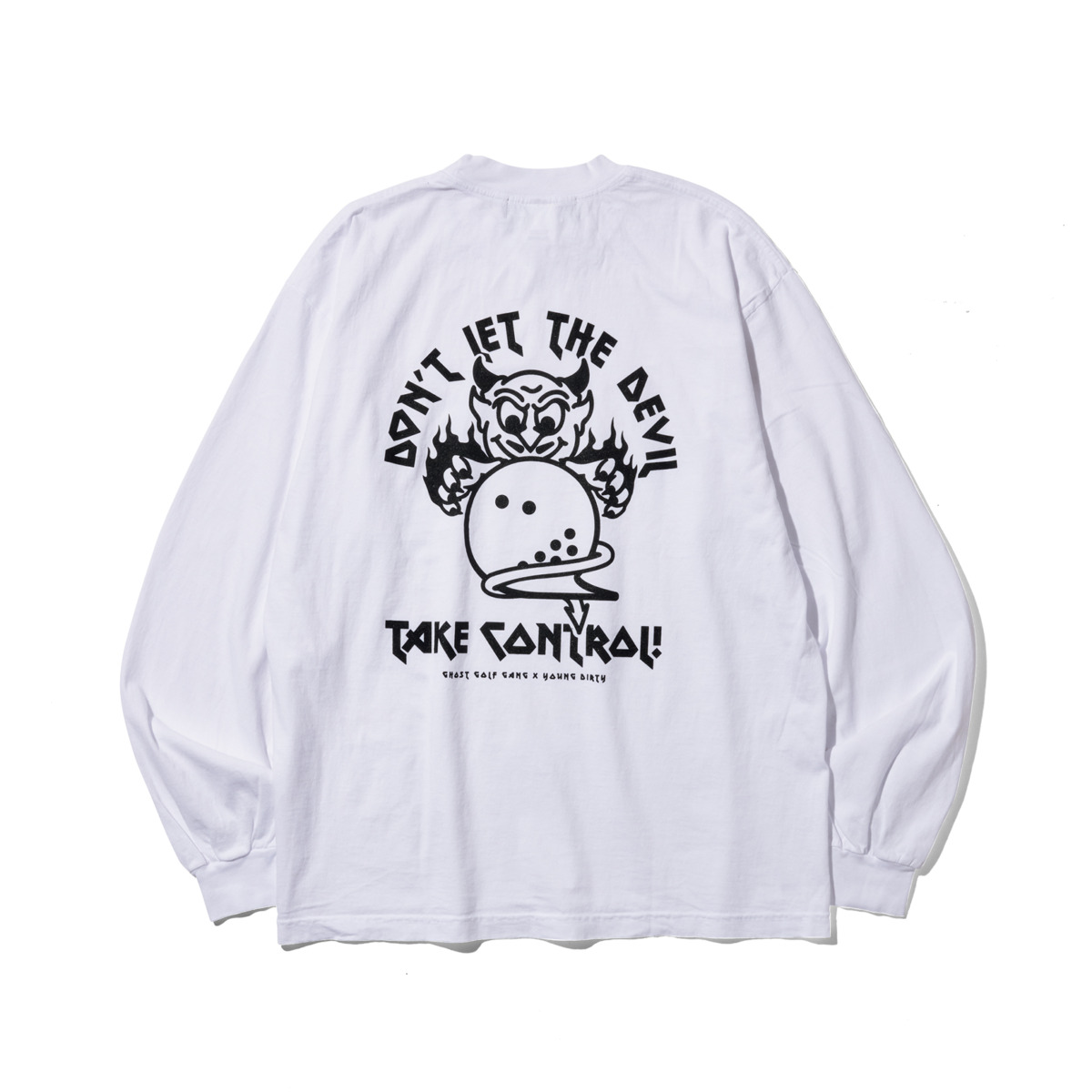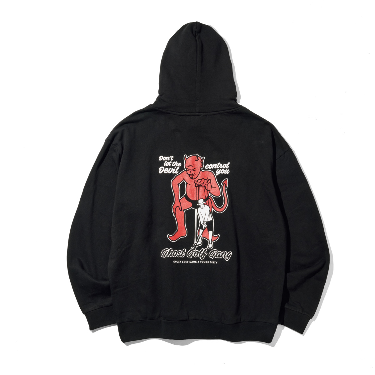 アメリカのイラストレーター「YOUNG DIRTY」とコラボしたスペシャルデザインフーディ。ゴルフが時に上手くいかないのは、デビルに操られているからかも……。19800円