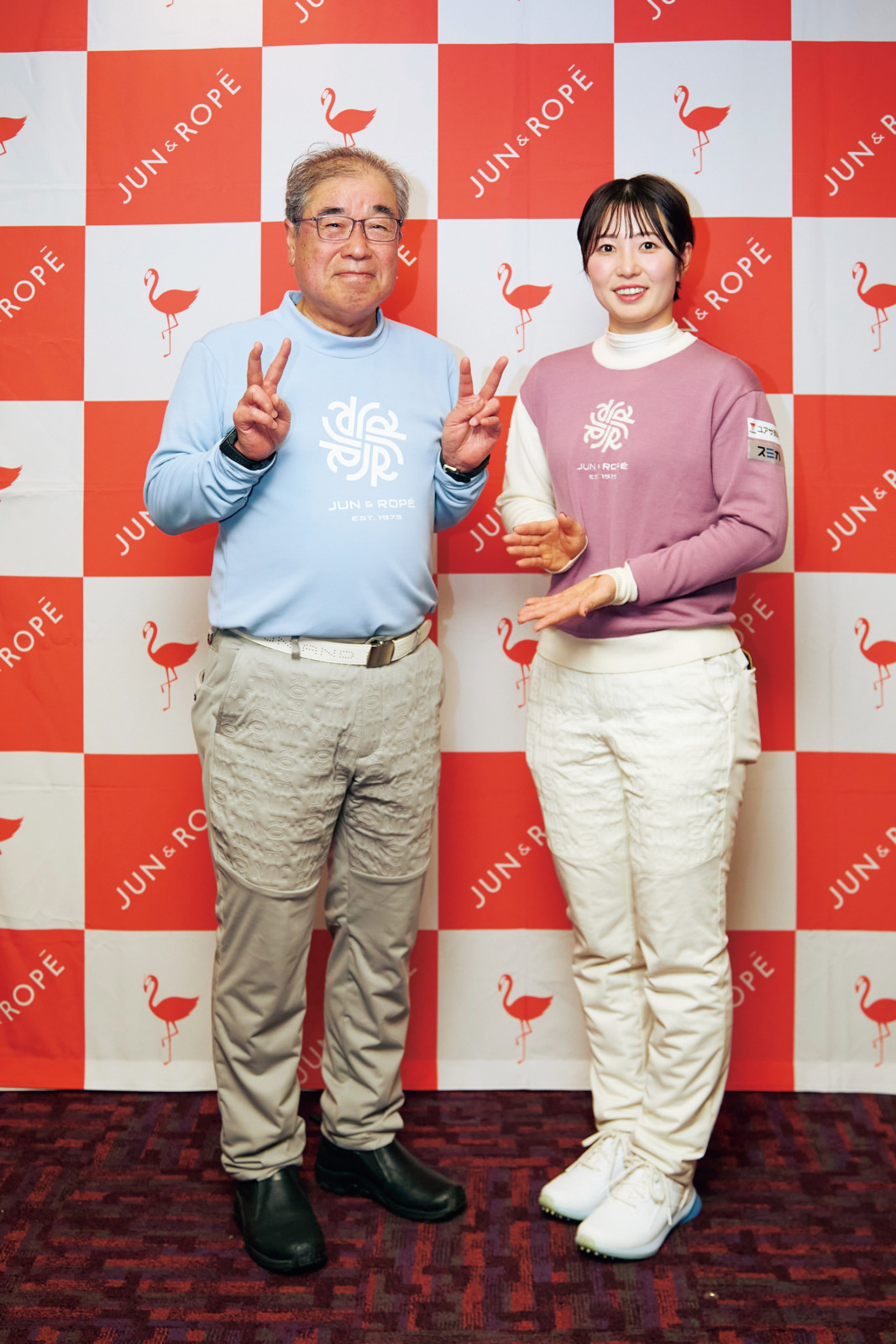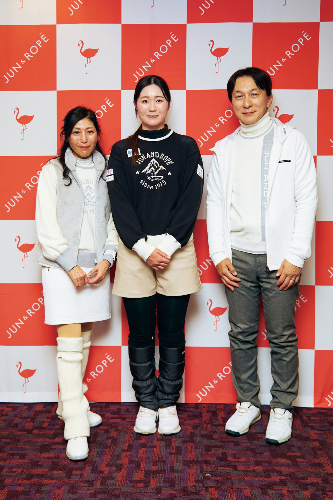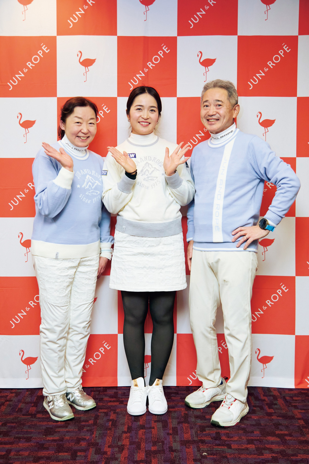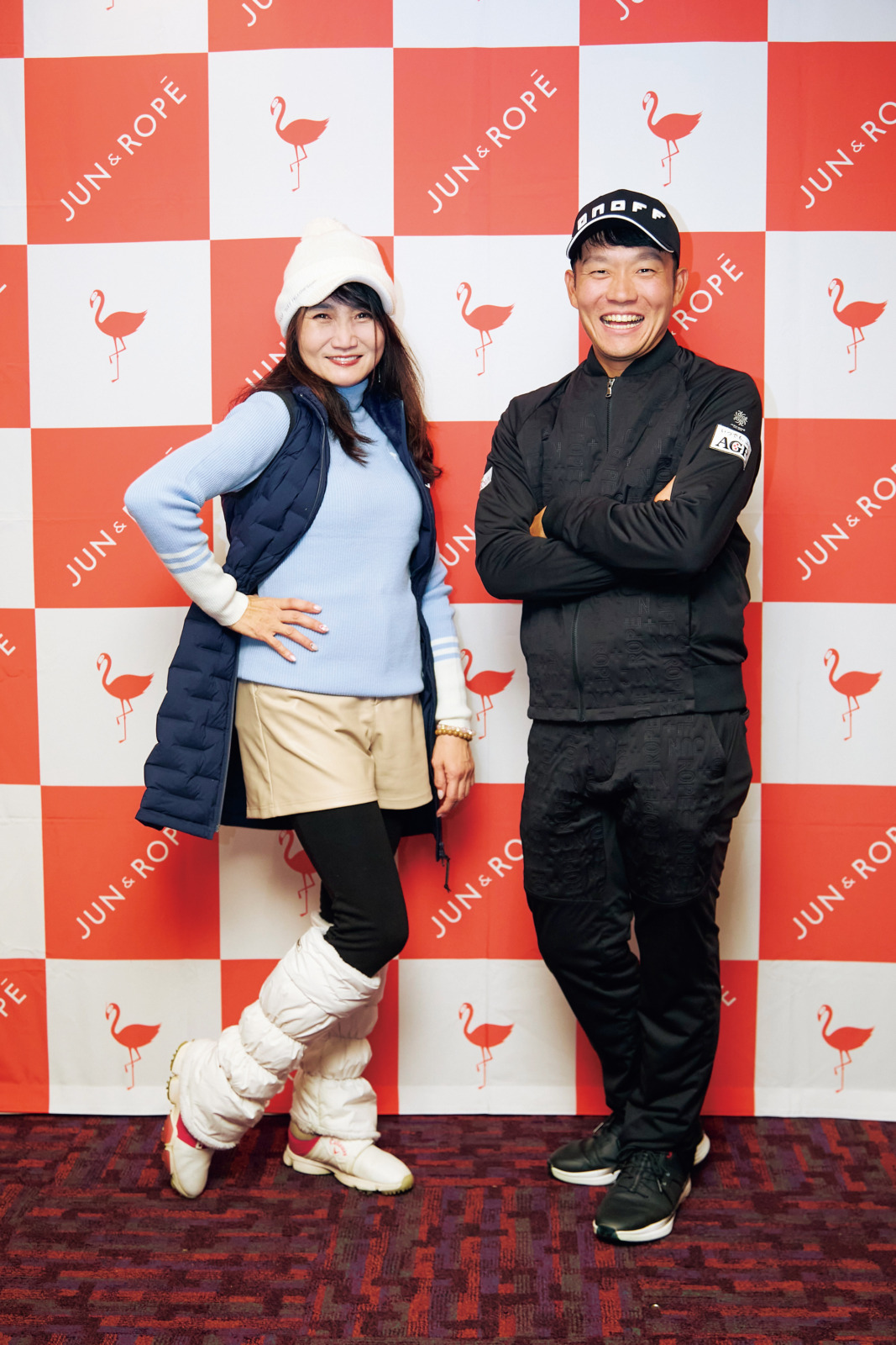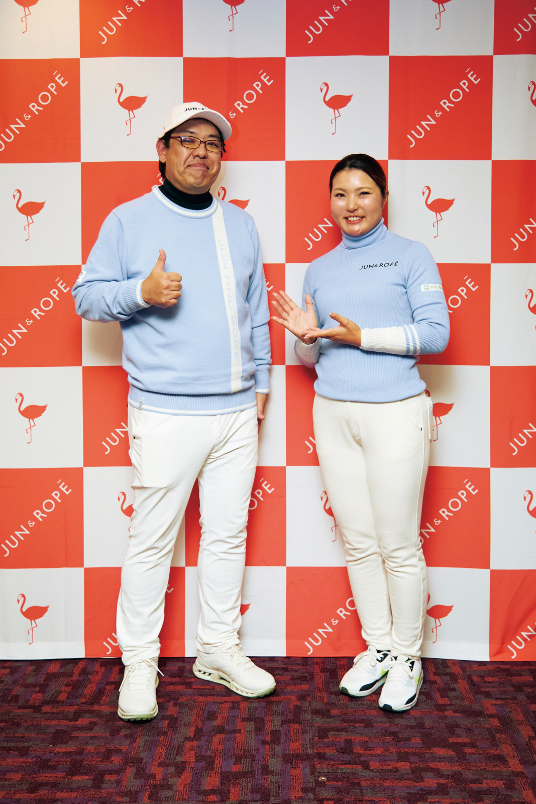 浅地洋佑、三ヶ島かな、植竹希望、高橋彩華、淺井咲希、エイミー・コガ、蛭田みな美の7選手がゲスト参加して行われた本イベント。オフの恒例企画としてすっかり定着しており、今回も「ジュン&ロペ」のウェアに身を包んだ多くのゴルファーが参加。ワンポイントレッスンを受けたり、一緒にラウンドしたり、その合間に一緒に写真を撮ったりとプロとの交流を楽しんだ。プレー終了後には、ベストドレッサー賞を発表!