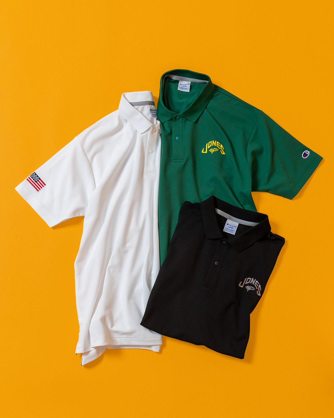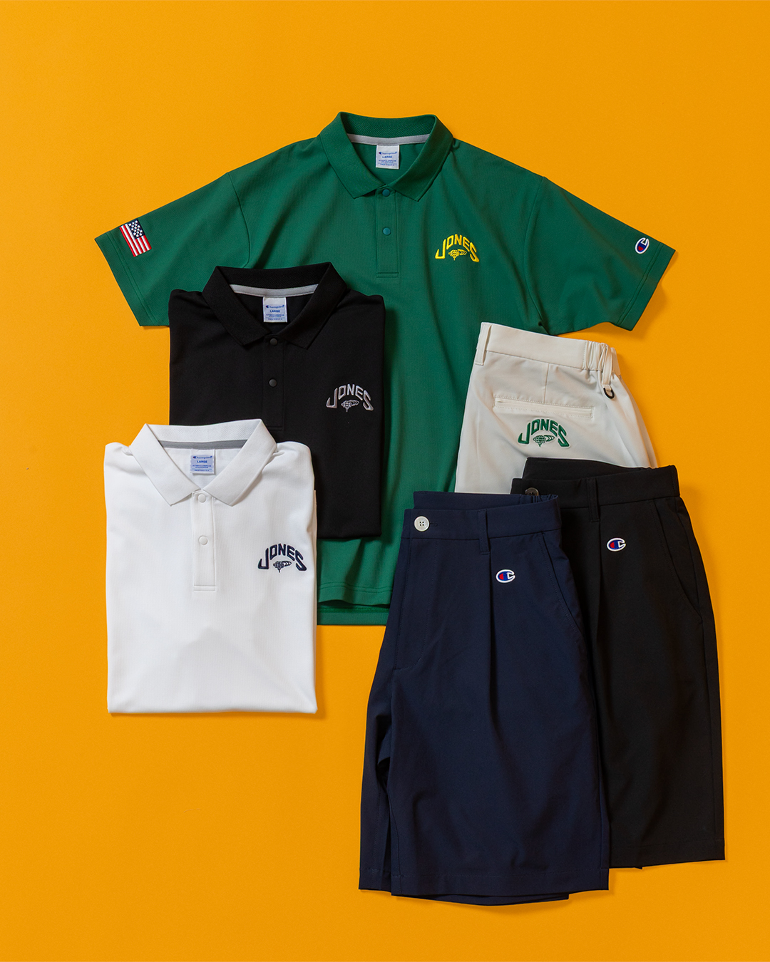さらに注目したいのが、JONES Sports Co.、Champion、BEAMS GOLFのトリプルネームによるゴルフウェアだ。