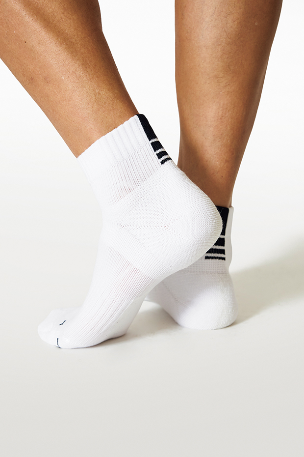 独自の編み方を採用することにより、土踏まずを持ち上げ、かかとをホールド。甲部分の通気性の通気性も確保した高機能ソックス。