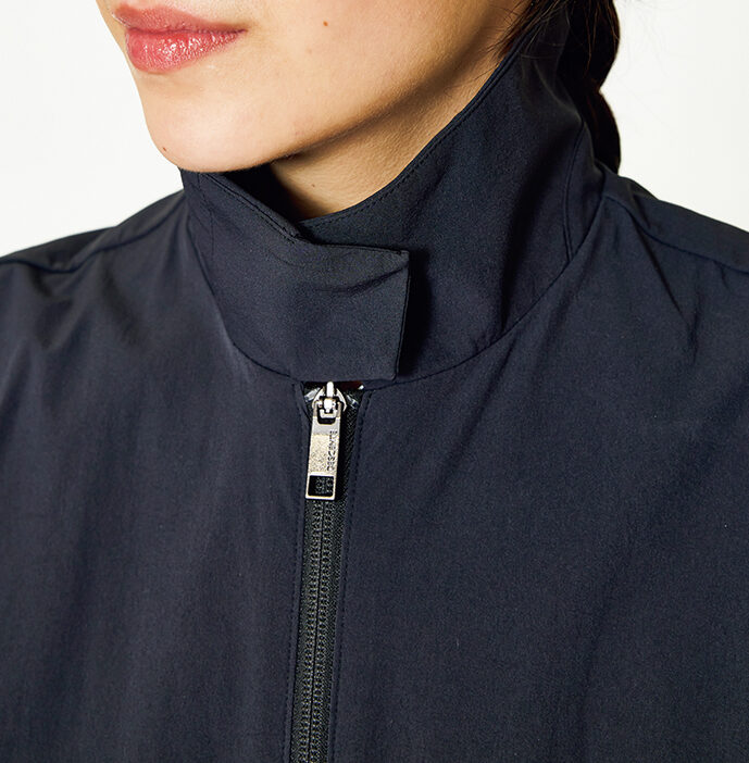 フロントジップを開ければロングベスト風の着こなしも