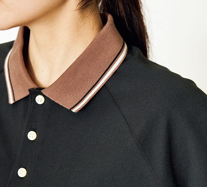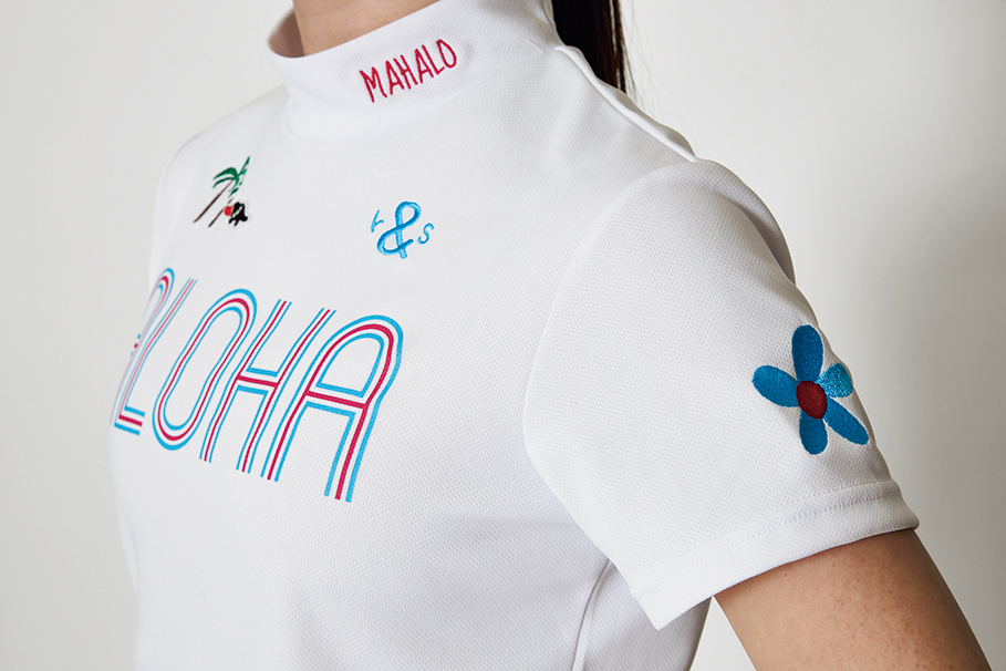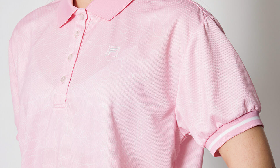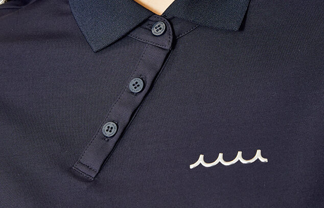 レディス用に新たにデザインした「タイニーロゴ」が映えるポロシャツには、首元をすっきり見せるベースボールカラーを採用しています。