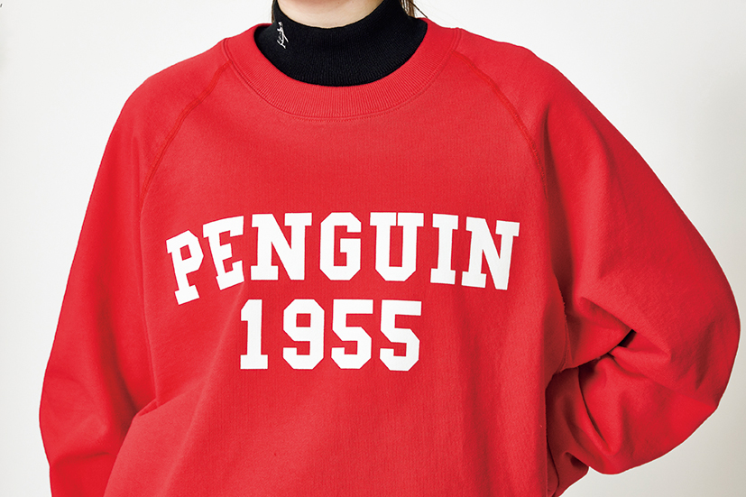 インパクトのあるカレッジロゴ風のグラフィックが印象的なスウェット。胸の数字は世界で初めてニット素材のゴルフシャツを世に出した年“1955”。