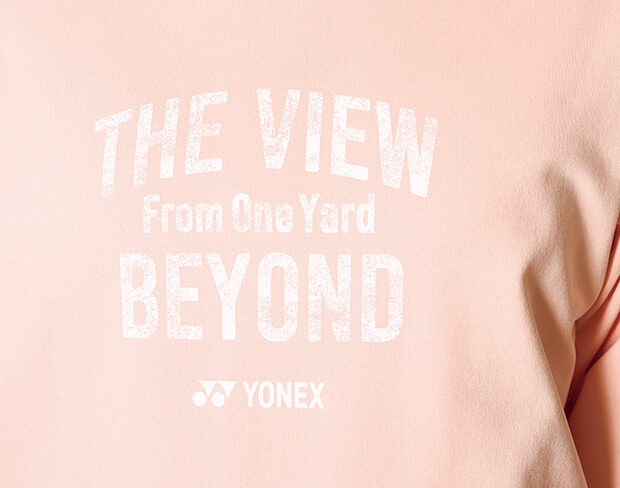 飛距離アップをサポートするウェアらしく、“1ヤード先からの眺め”を意味するメッセージプリントをフロントに配置。あえての色落ち感も特徴です。