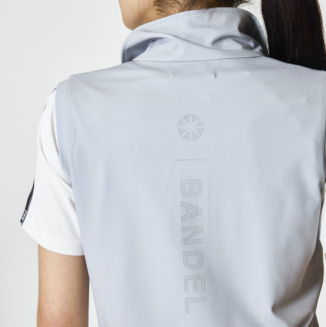 微かに起毛させた柔らかな素材感と伸縮性が特長のジップアップベスト。バックロゴは通気性とデザイン性を兼ね備えたヒートパンチングで表現。