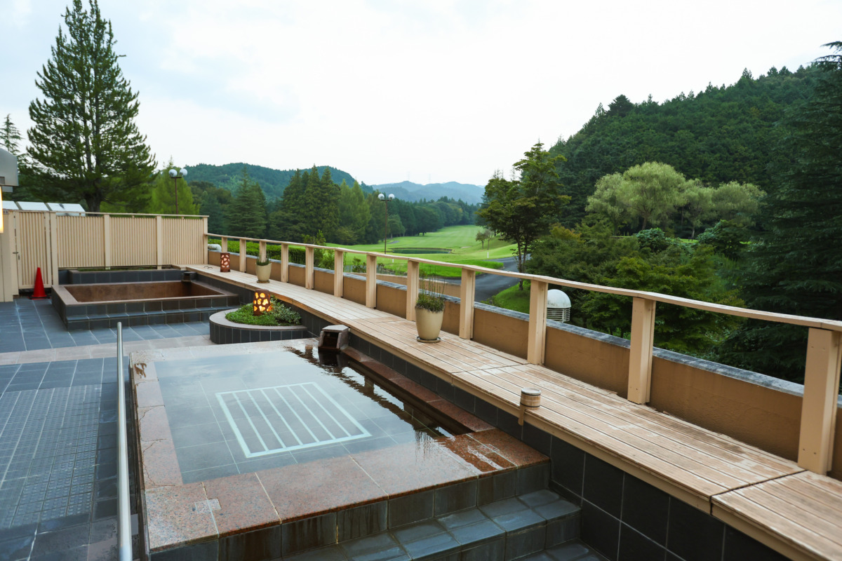 プレー後は、源泉かけ流しの「展望露天風呂」でリフレッシュ