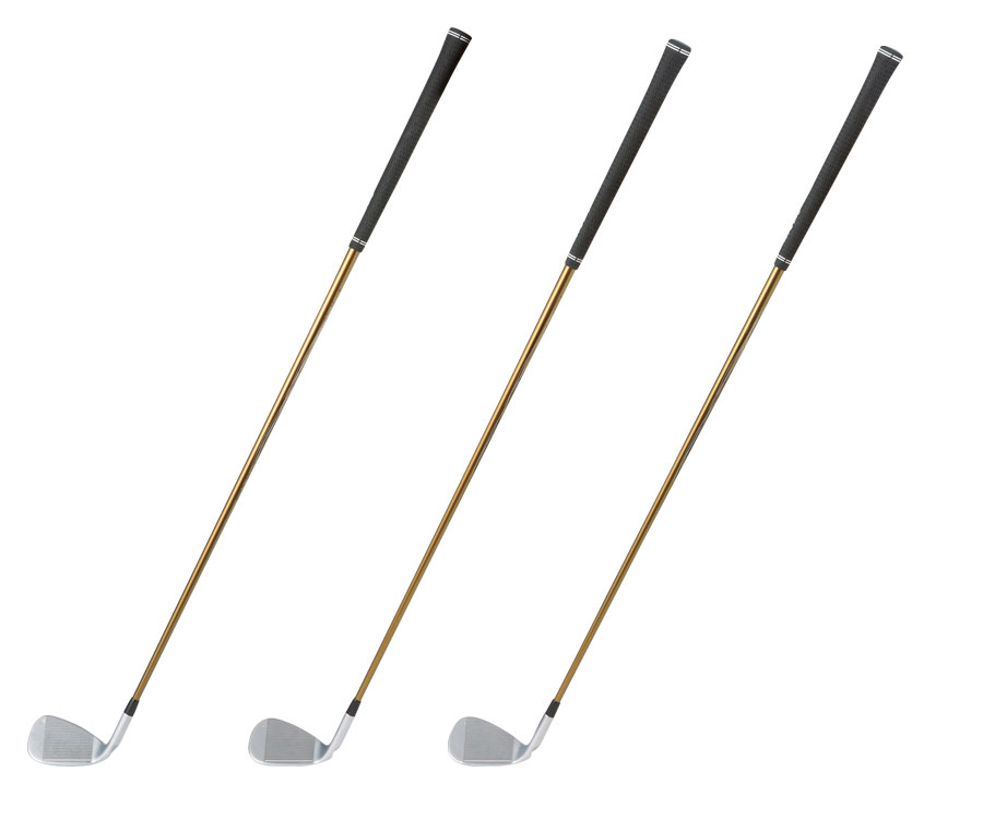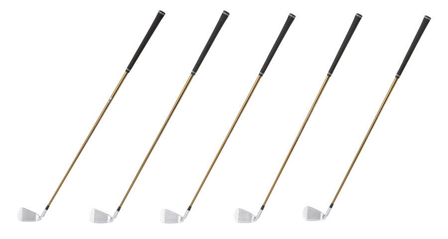 5番、6番……と飛ばせる距離によって種類があり、長さやフェース面の角度(ロフト角)が異なる。5 ~9 番にピッチングウェッジを加えた6 本セットで販売されることが多い。