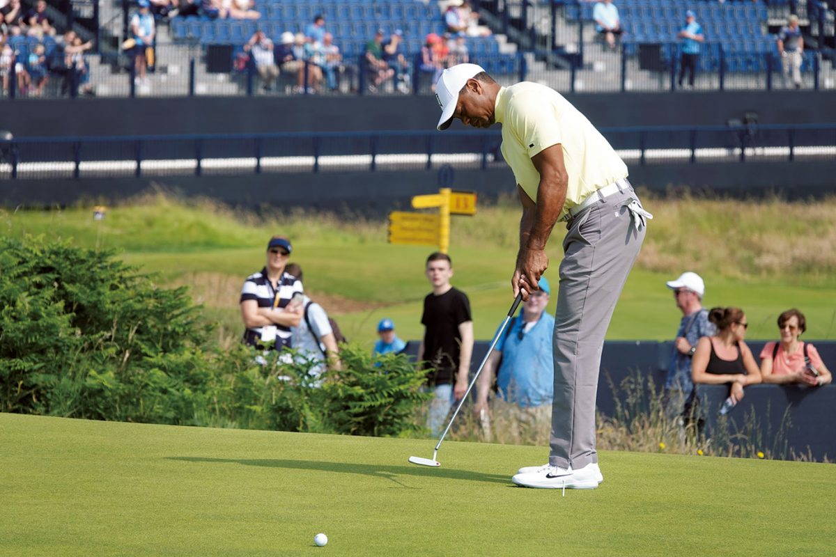 米PGAツアー屈指のパットの名手としても知られるタイガー・ウッズは、ラインを読む時によくキャップのツバのあたりに両手をかざしています。これは両手を当てることで周囲の景色を遮断し、ラインをトンネル化して見ているのです。