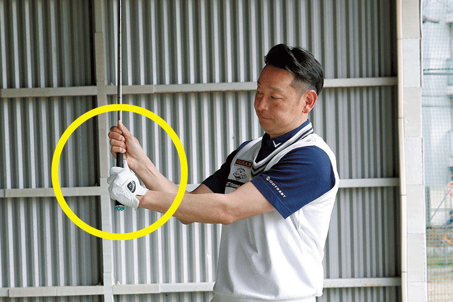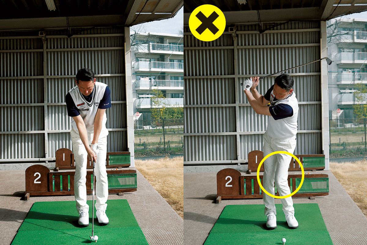(中)フォロースルーでフェース面が上を向くのはNGだ。