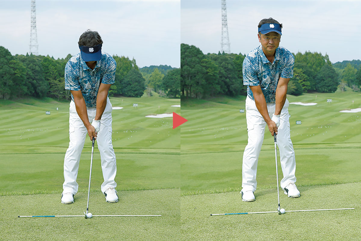 それならスイング軌道の最下点でボールをとらえれば良いのではないかと思うでしょう。しかし、そのイメージではアドレスのロフト角をインパクトで再現することになり、ボールをハンドファーストにとらえることができず、飛距離が出ないのです。