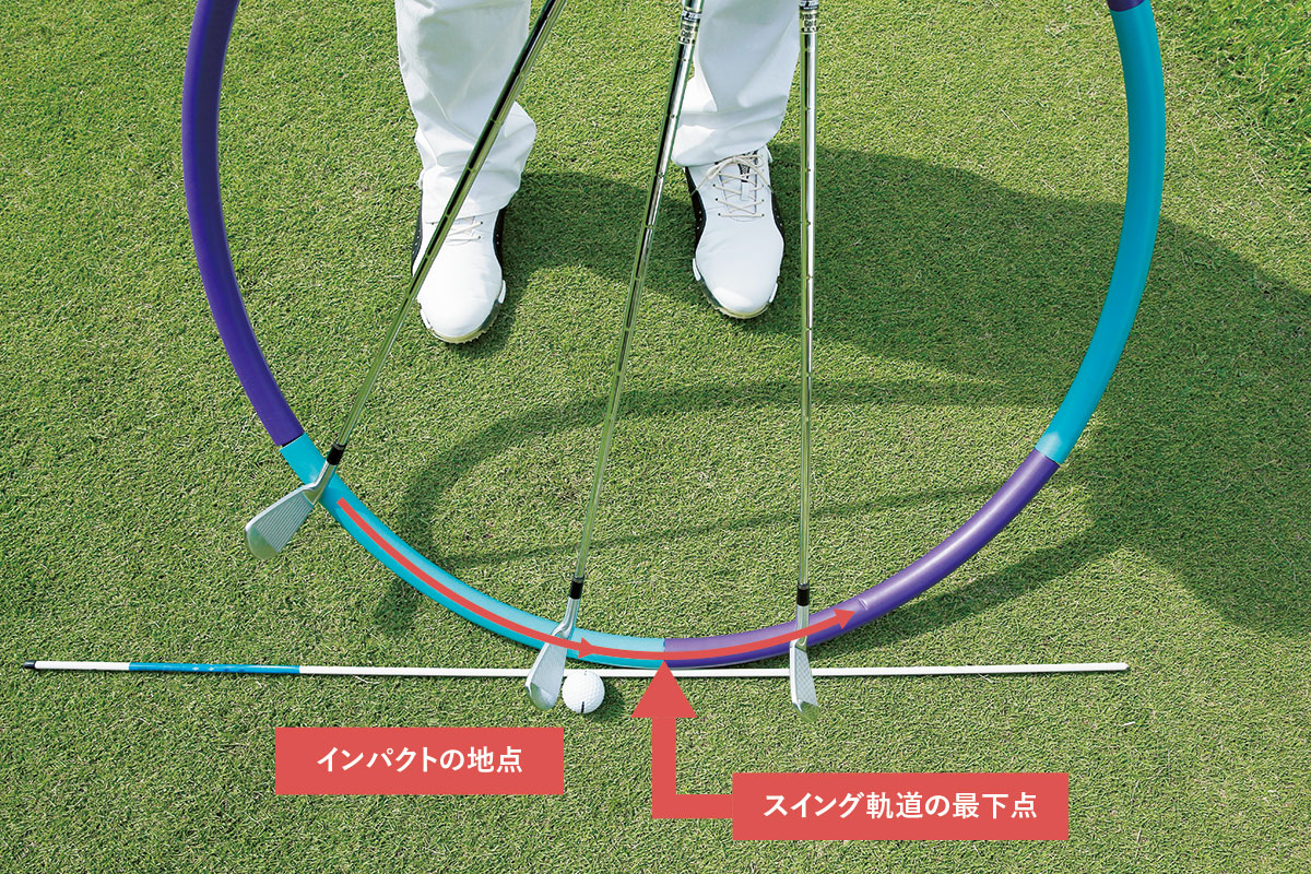 フラフープを使って、インパクトエリアのクラブヘッドの軌道について説明しましょう。
