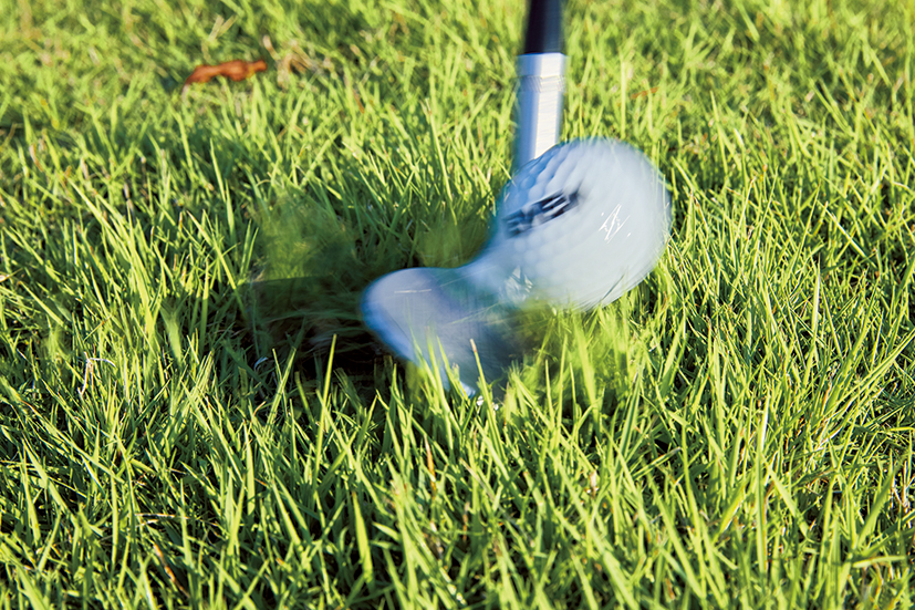 夏は芝の成長も旺盛となり、スイングの際にかかる抵抗も大きくなる。芝の上を滑りやすい特性の幅広ソールで、突き刺さりを抑制し、脱出優先を心掛ける。