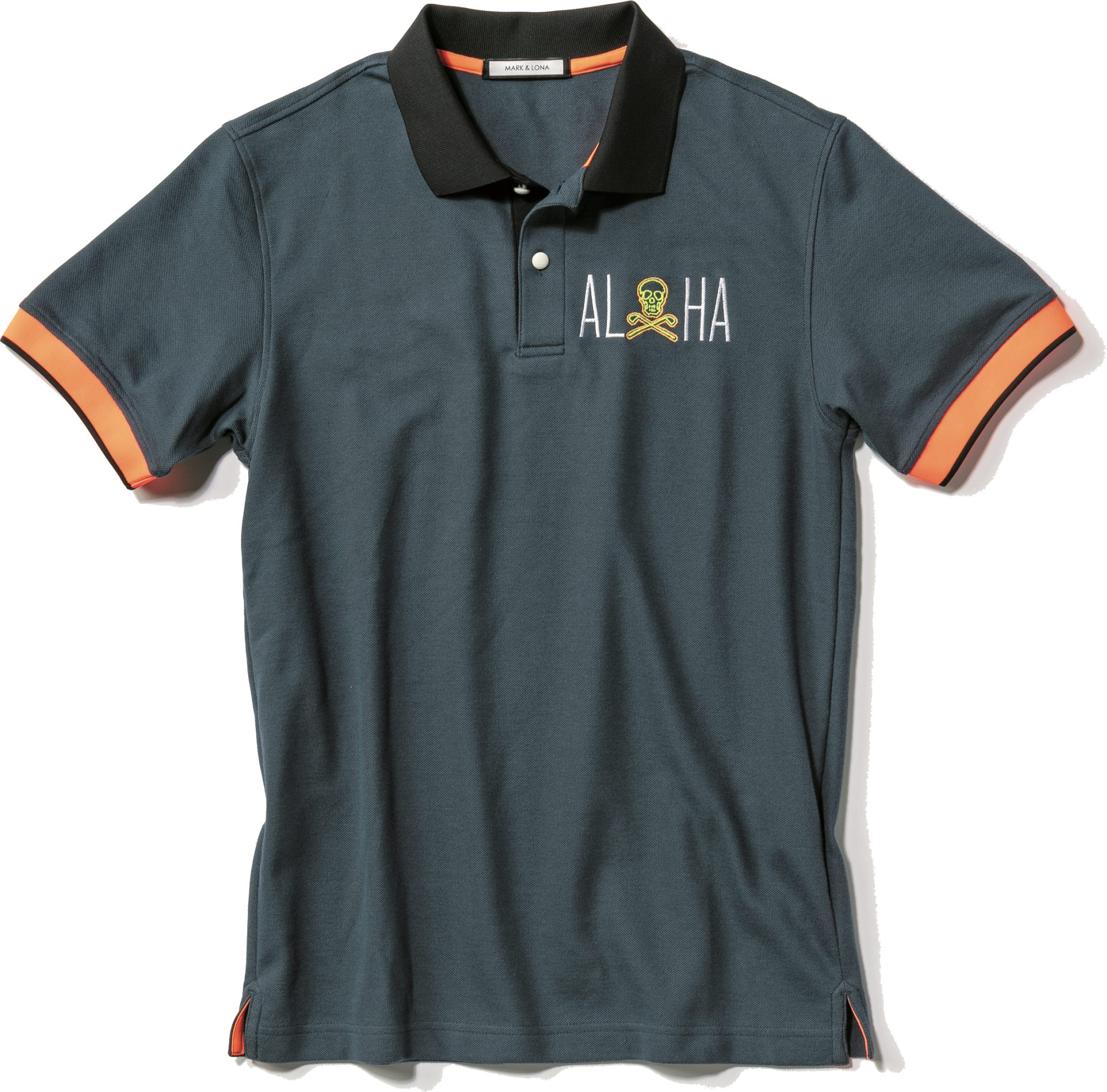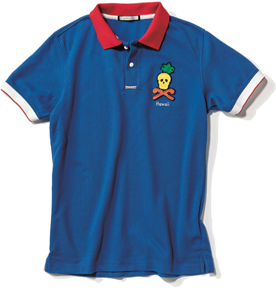 ALOHAのアレンジが秀逸なデザインのポロシャツ。ネオンカラーをアクセントにシンプルながら個性を放つ。¥23,000+税