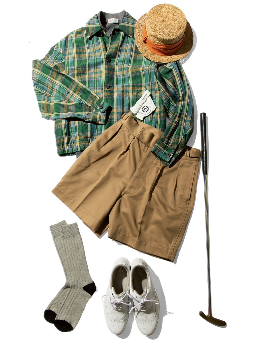 「ご紹介する“クラシック”なコーディネートのショーツは、実はグルカショーツと呼ばれる流行りのアイテムで今の旬も押さえています。また“モダン”なコーディネートで使ったヘンリーネックとトラックパンツは高い機能性を備え、アスリートが着れば良い結果が残せるはず。つまりサイズも、素材もシルエットもMIXして自由に楽しめるそんなゴルフファッションこそ理想で、ゴルフ業界のルールもそうあるべきだと思う」と村上氏。プレー向きでない着こなしでも、将来的にそれがお洒落ゴルフの基準となっているかもしれないのだ。