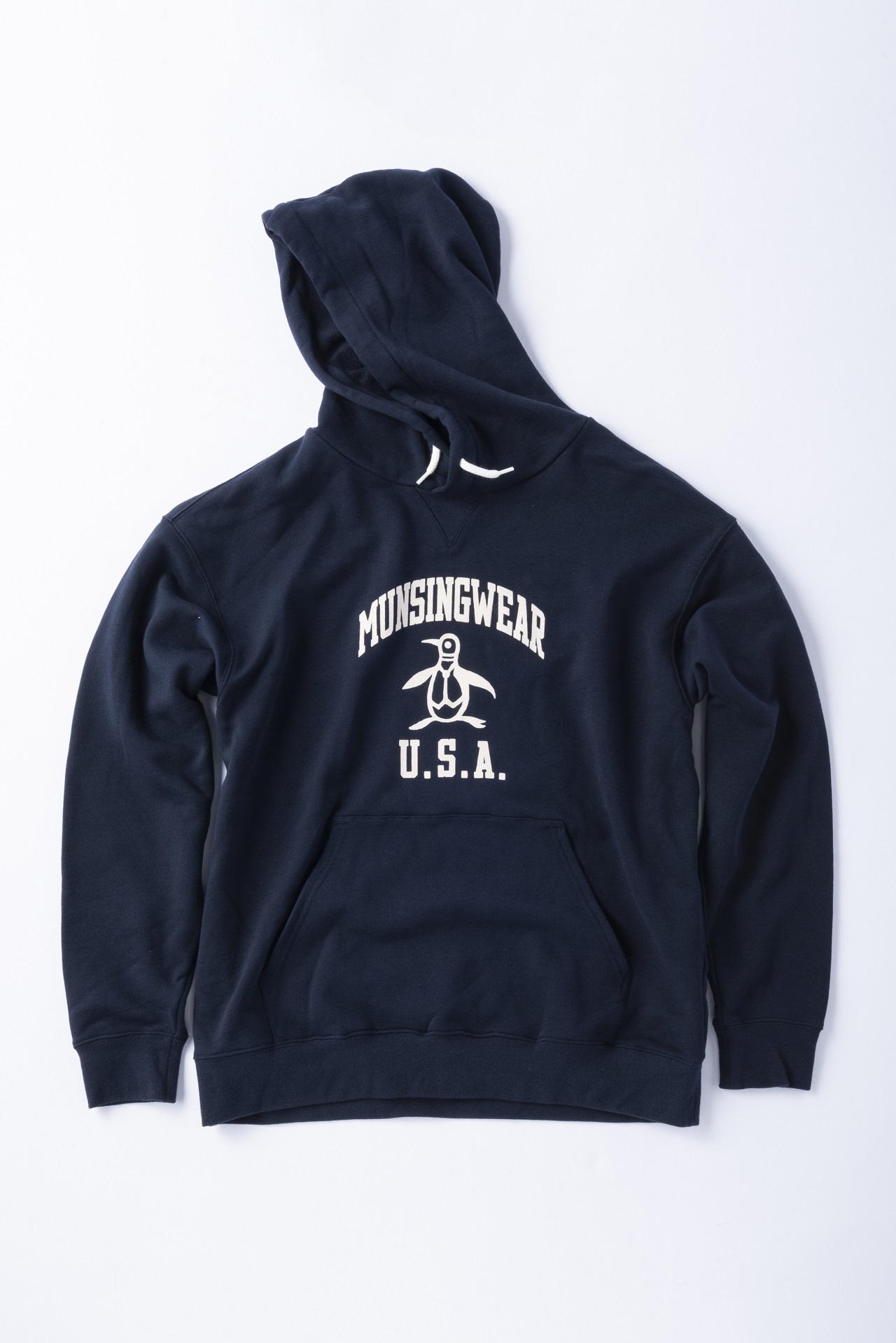 それを使ったパーカで、デザインは今季も流行が続くカレッジテイスト。