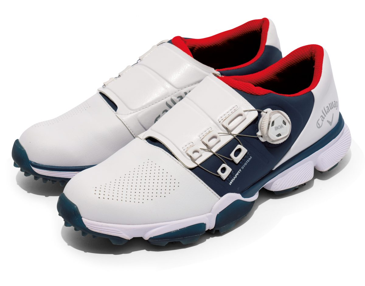 アッパー全体で足をホールドする独自の「ラップフィットシステム」が好評のキャロウェイシューズに新作は、石川遼プロのリクエストを数多く取り入れられたクラシック顔。