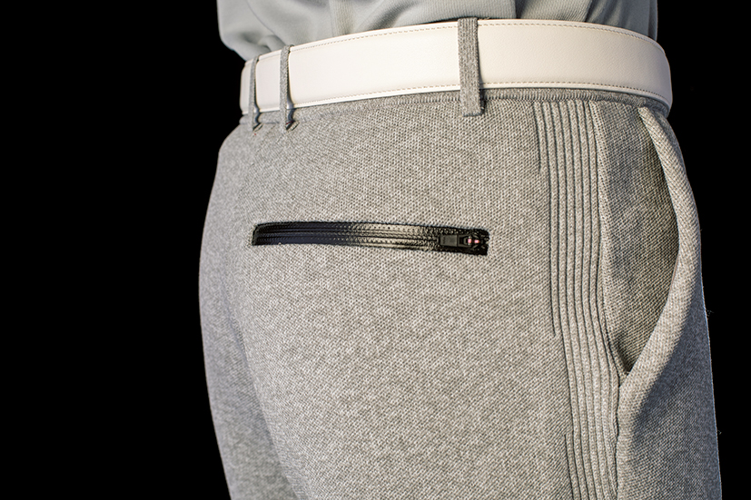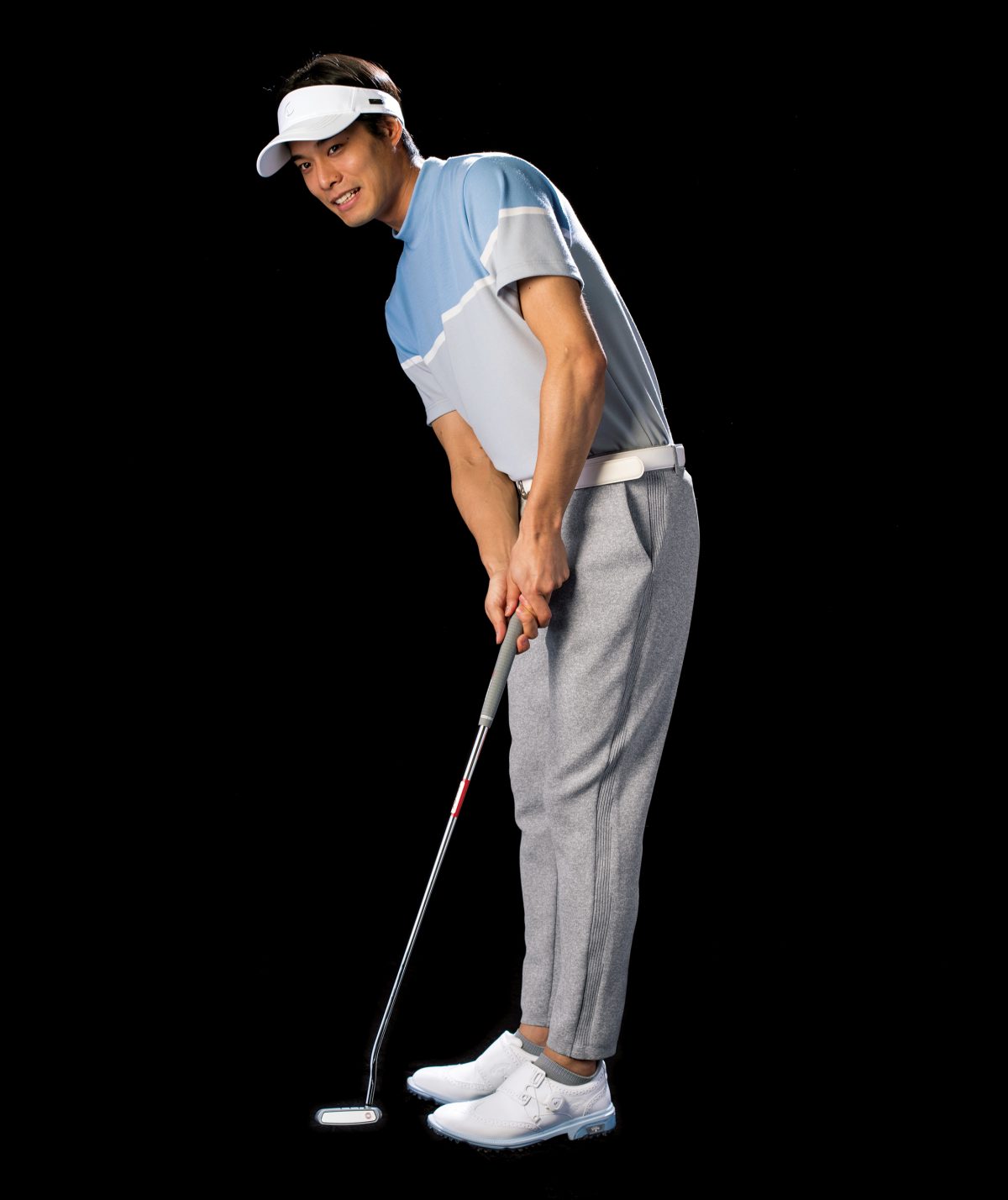 石川遼プロも着用する、ミニマムな丈と美シルエットのジョガーパンツが今春も人気。地厚なダンボール素材でリラックスして着こなせて、履き心地も抜群。旬度を上げてくれるグリーンポロのトレンド感を添えて、よりアクティブな印象のゴルフスタイルに。