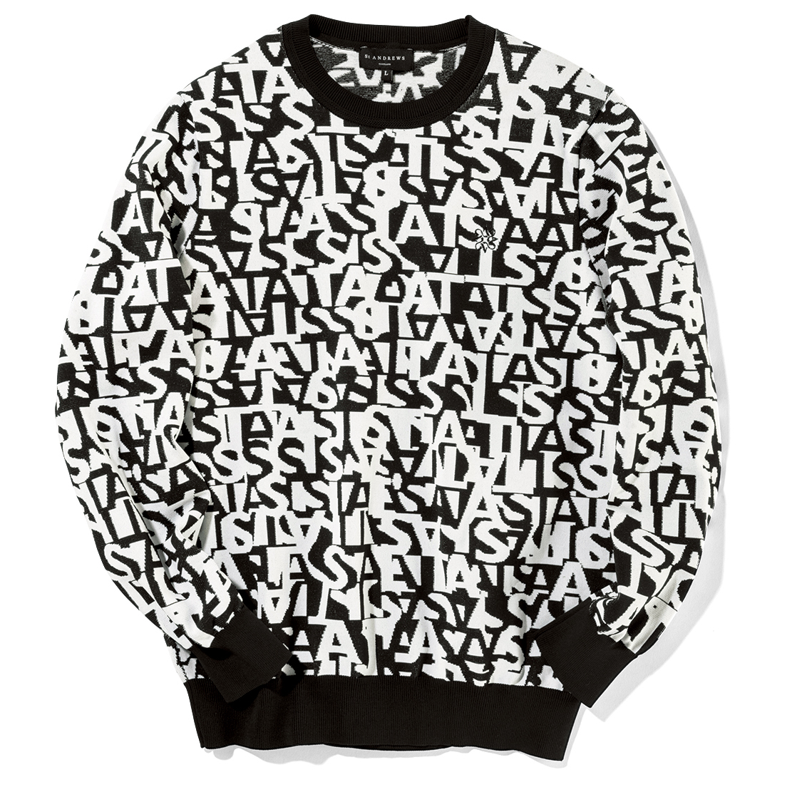 STAロゴプリントを全体に散りばめたジャカードニット。大人のシックな雰囲気で、秋口に着やすい快適さと肌触り。