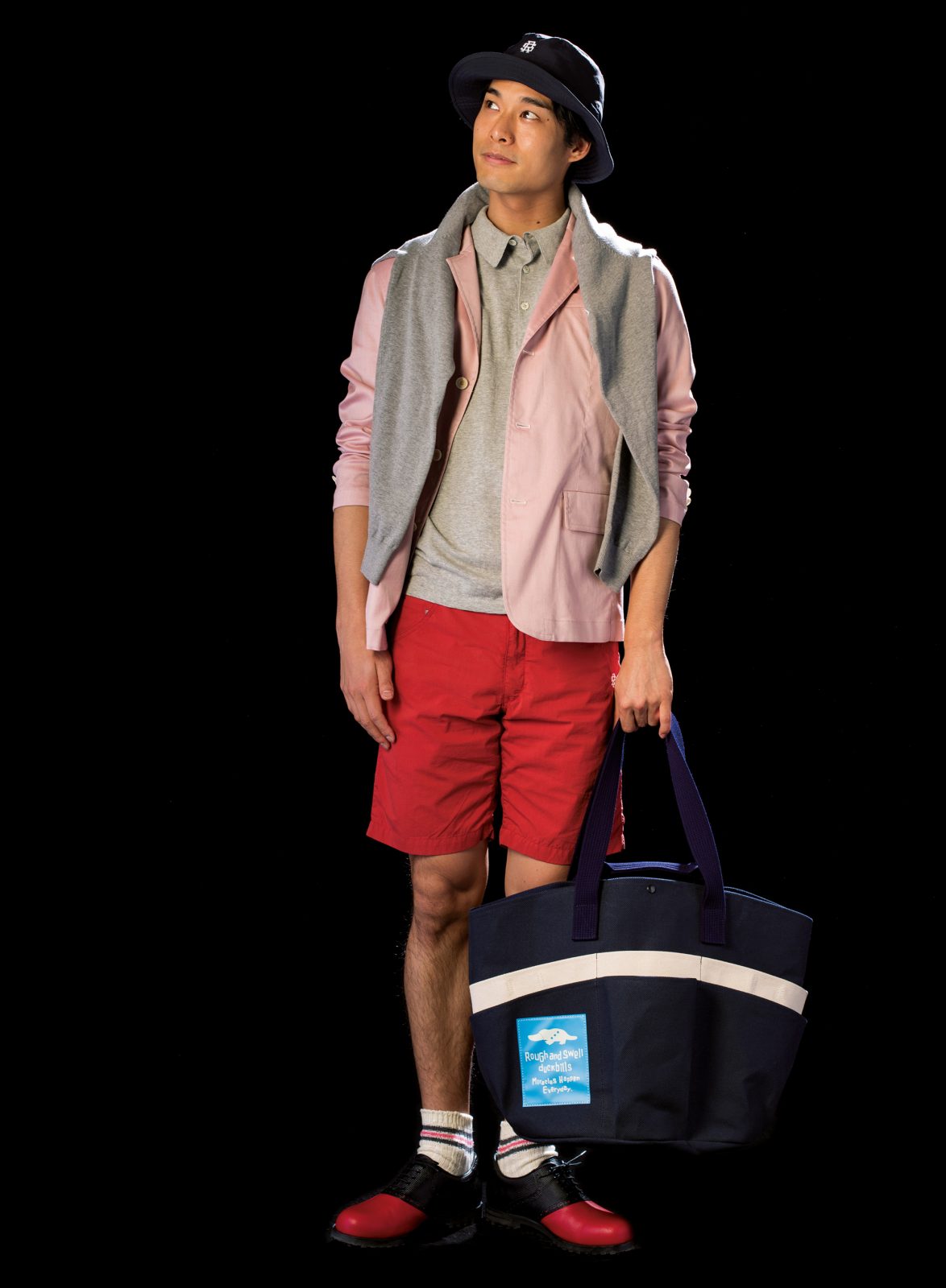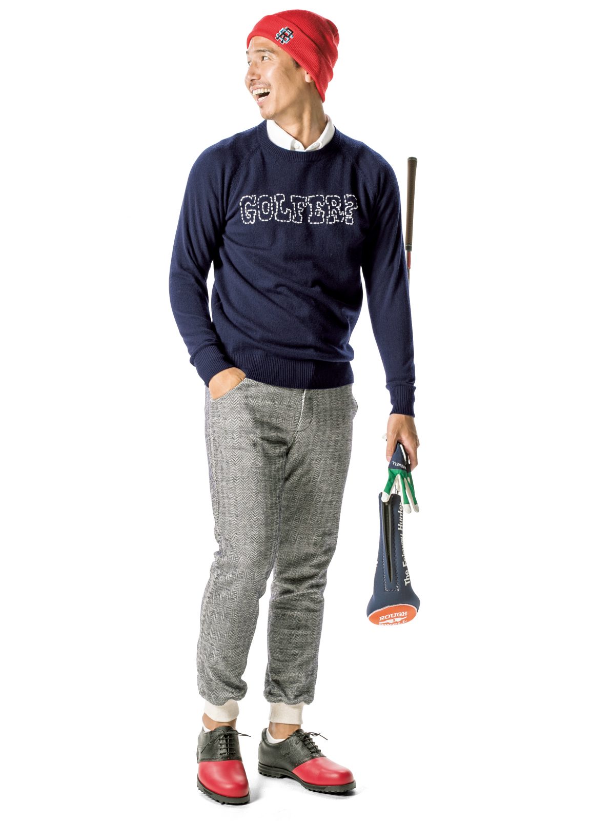 中村:ゴルフウエアにも気負いなくジャケットを着て欲しくて。ニットを肩掛けしてみたり、アレンジも忘れずにね。
